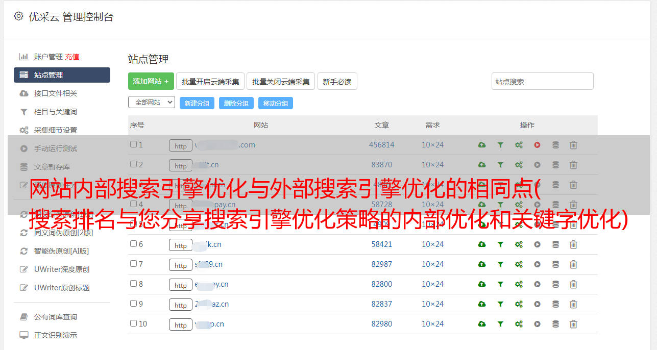 优采云 发布时间: 2022-04-16 11:24网站内部搜索引擎优化与外部搜索引擎优化的相同点(