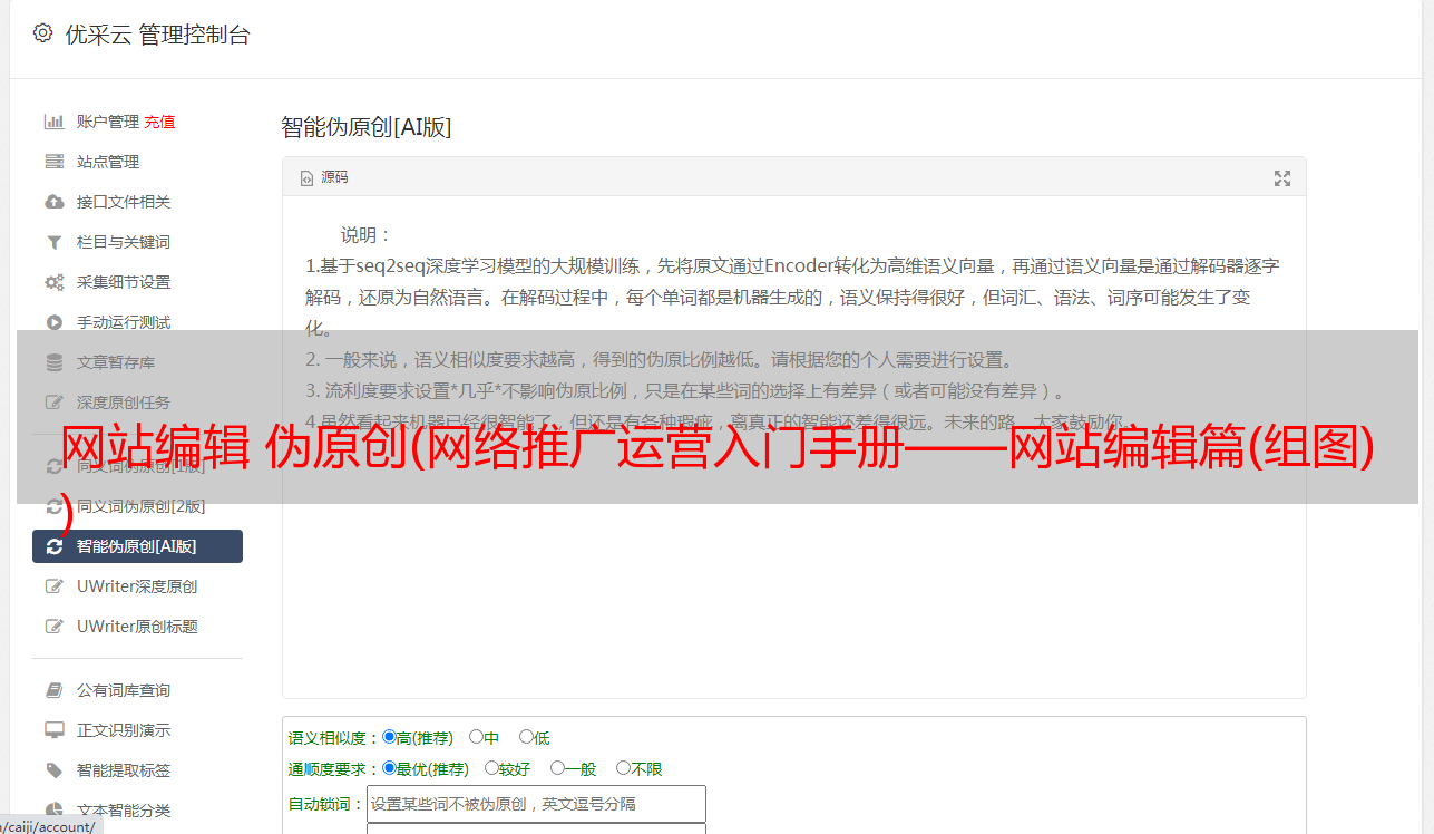 优采云 发布时间: 2022-04-16 17:28网站编辑 伪原创(网络推广运营入门手册——网站编辑篇(组图)