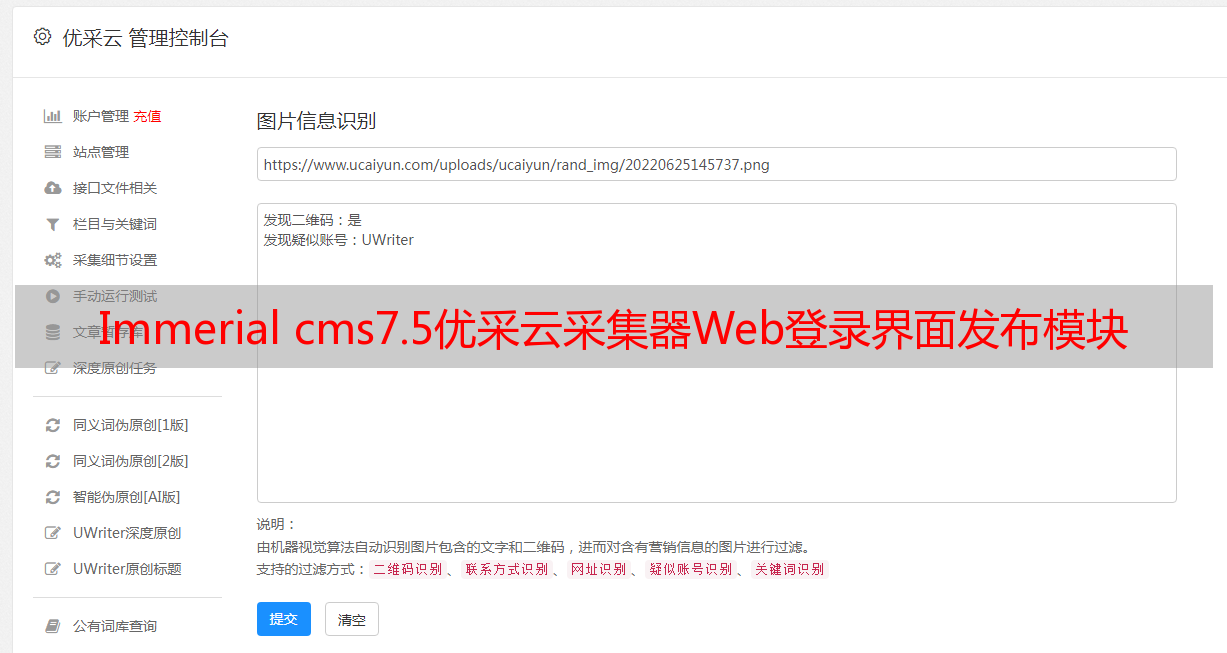 Immerial cms7.5优采云采集器Web登录界面发布模块