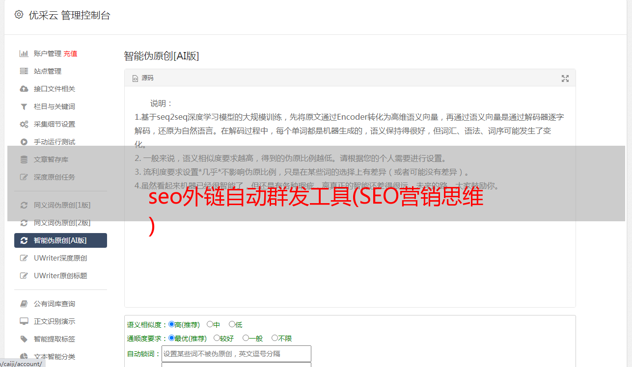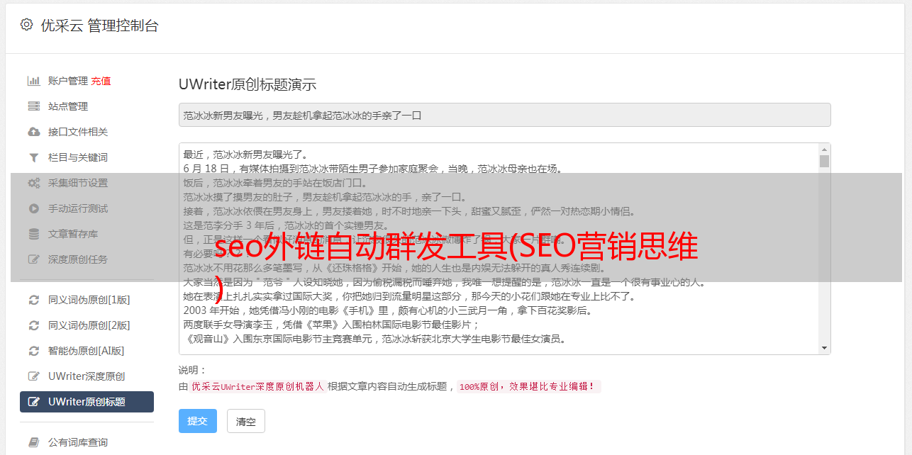 优采云 发布时间: 2022-04-16 22:31seo外链自动群发工具(SEO营销思维