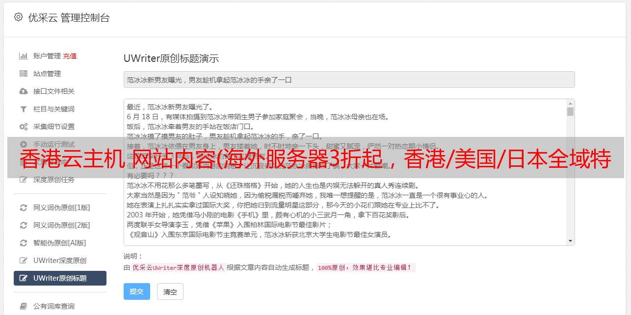 优采云 发布时间: 2022-04-17 07:39香港云主机 网站内容(海外服务器3折起,香港/美国/日本全域特价抢购)