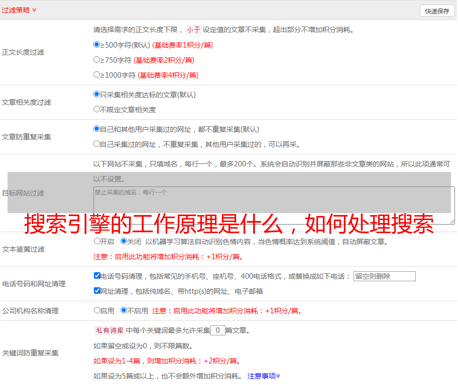 搜索引擎就像库存。它采集成千上万或数千万个网页。当用户搜索所需的相关关键词时,搜索引擎将在这些网页中搜索。出现的网页涵盖了这些关键词的所有相关内容,并且结果在关键词的相关程度中从高到低排列。该原理的处理方法与传统搜索引擎原理几乎相同,但会更加完善。搜索引擎是一个非常智能的机器人。它可以通过分析数据来发布相关的关键词内容,并找到更多相关的关键词内容,因此只能通过相关的关键词找到您制作的内容。是的,搜索引擎会更喜欢您网站 。只有您的用户喜欢网站时,搜索引擎才能为您排名更好。