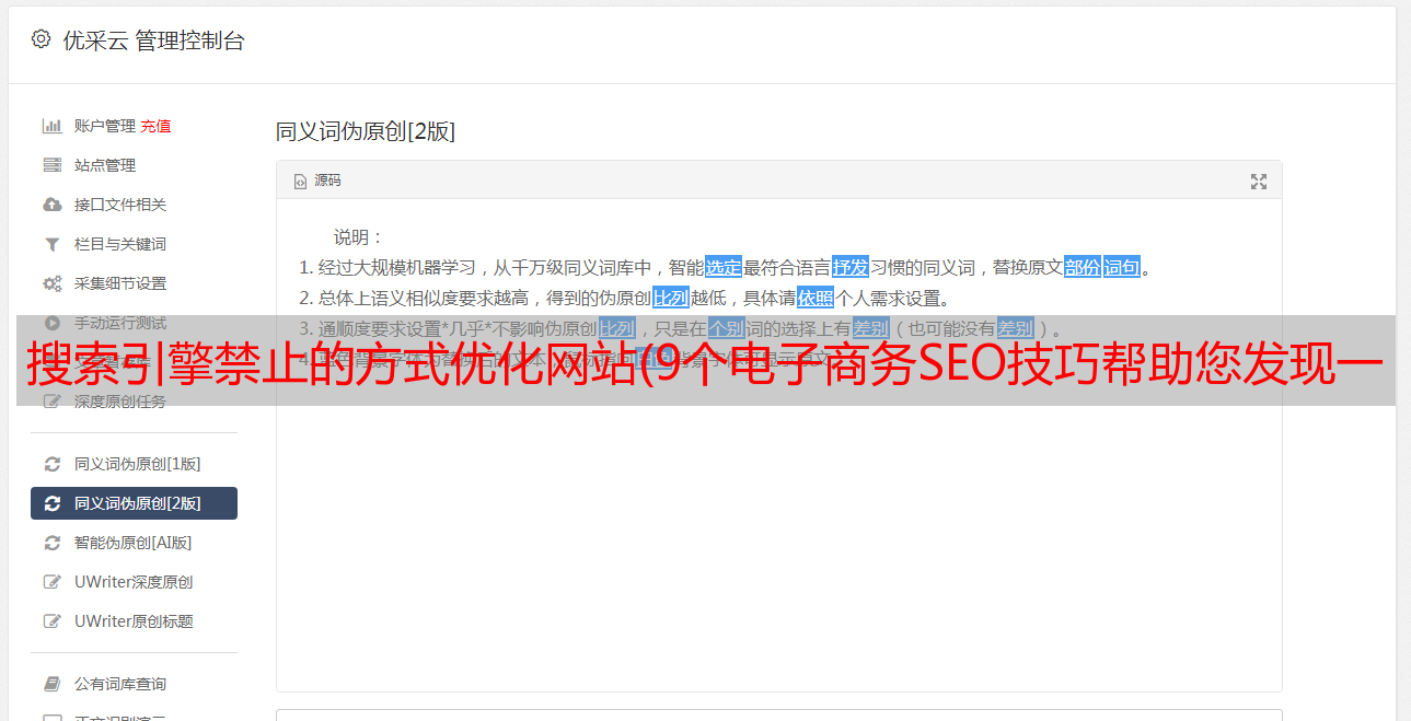 优采云 发布时间: 2022-04-17 16:29搜索引擎禁止的方式优化网站(9个电子商务SEO技巧帮助您发现一种行之有效优化