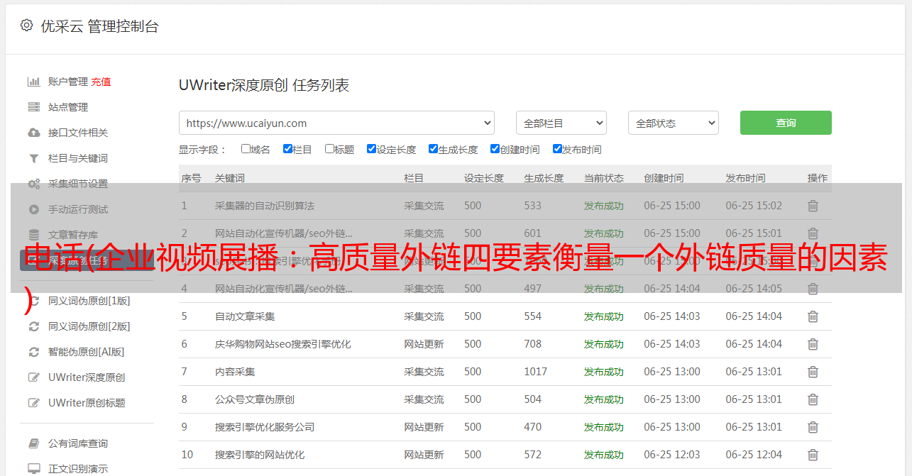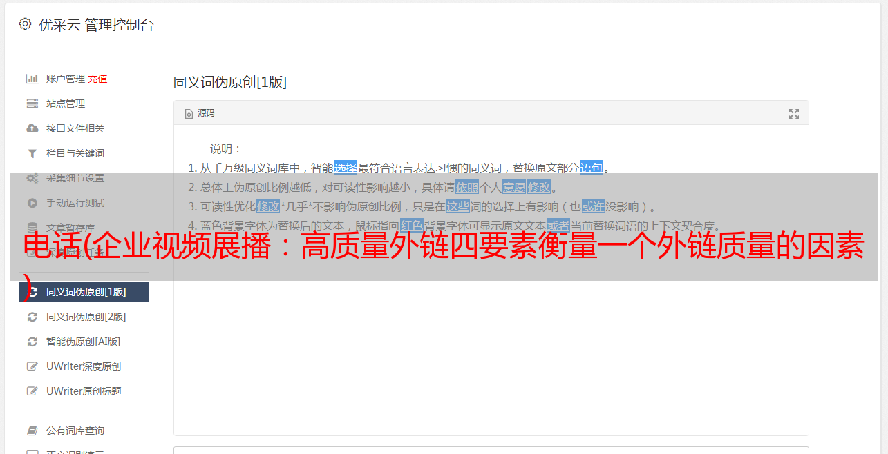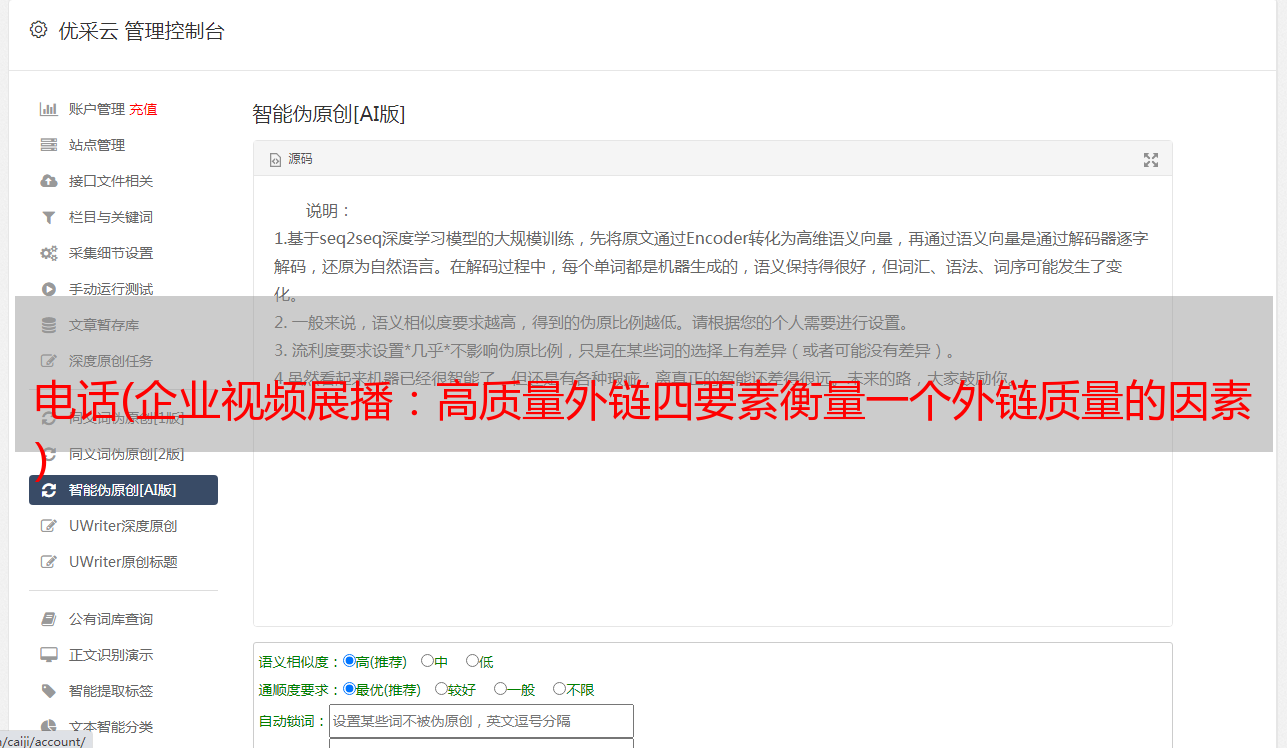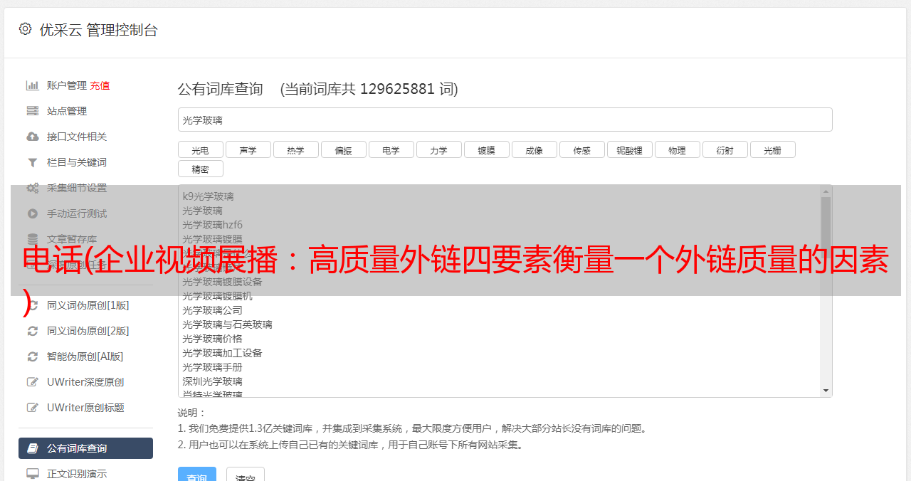 优采云 发布时间: 2022-04-17 22:47电话(企业视频展播:高质量外链四要素衡量一个外链质量的因素