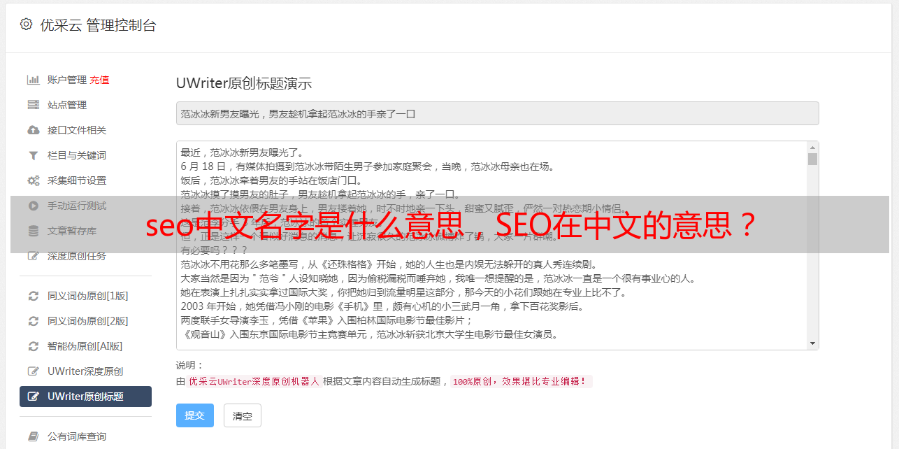 优采云 发布时间: 2021-05-17 20:14seo中文名字是什么意思,SEO在中文的意思?