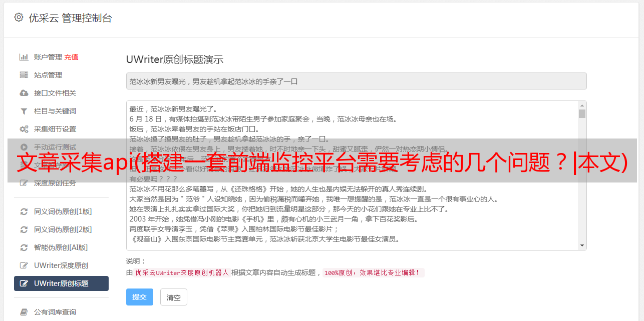 文章采集api(搭建一套前端监控平台需要考虑的几个问题?|本文)