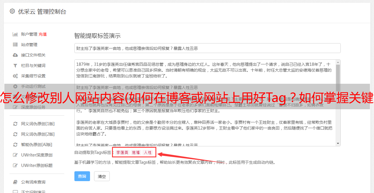 优采云 发布时间: 2022-04-19 05:21怎么修改别人网站内容(如何在博客或网站上用好Tag?如何掌握关键词?
