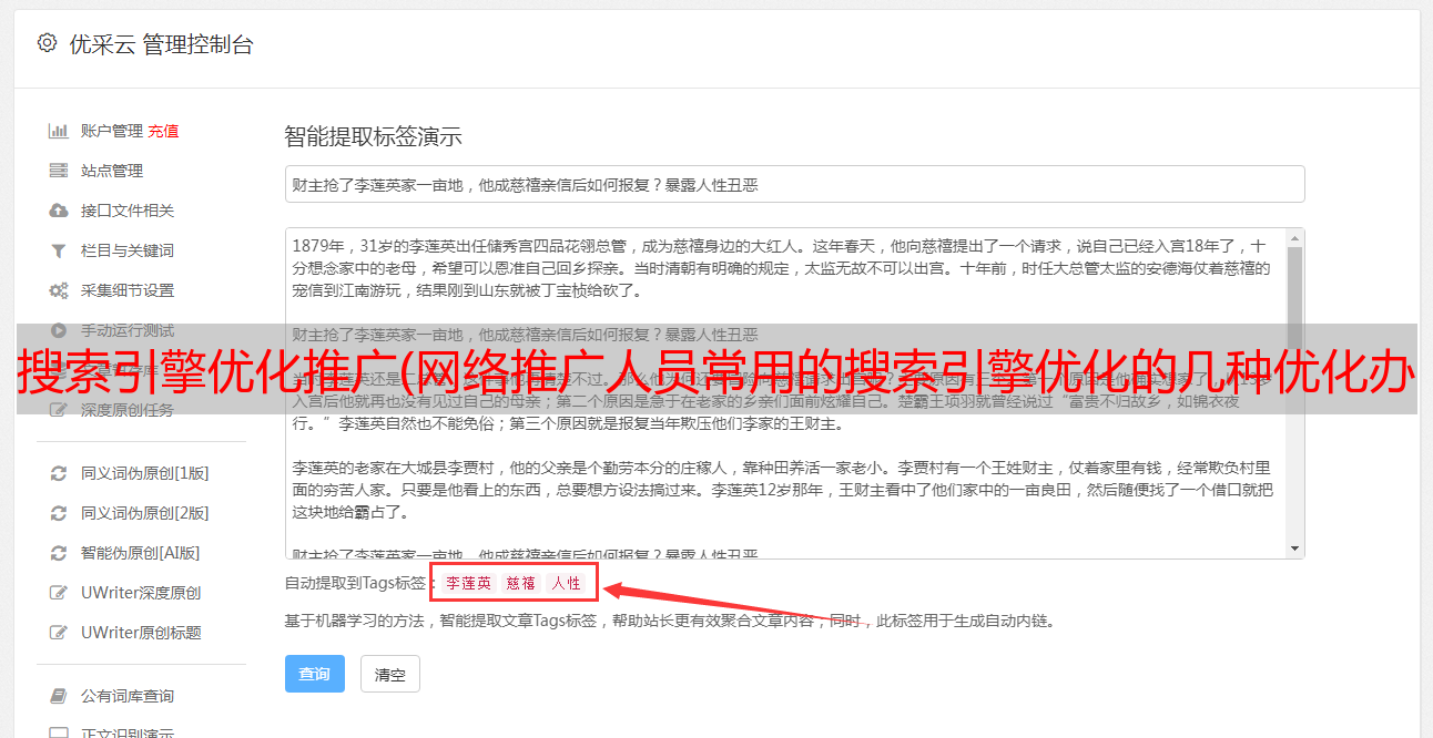 优采云 发布时间: 2022-04-19 06:14搜索引擎优化推广(网络推广人员常用的搜索引擎优化的几种优化办法(图))