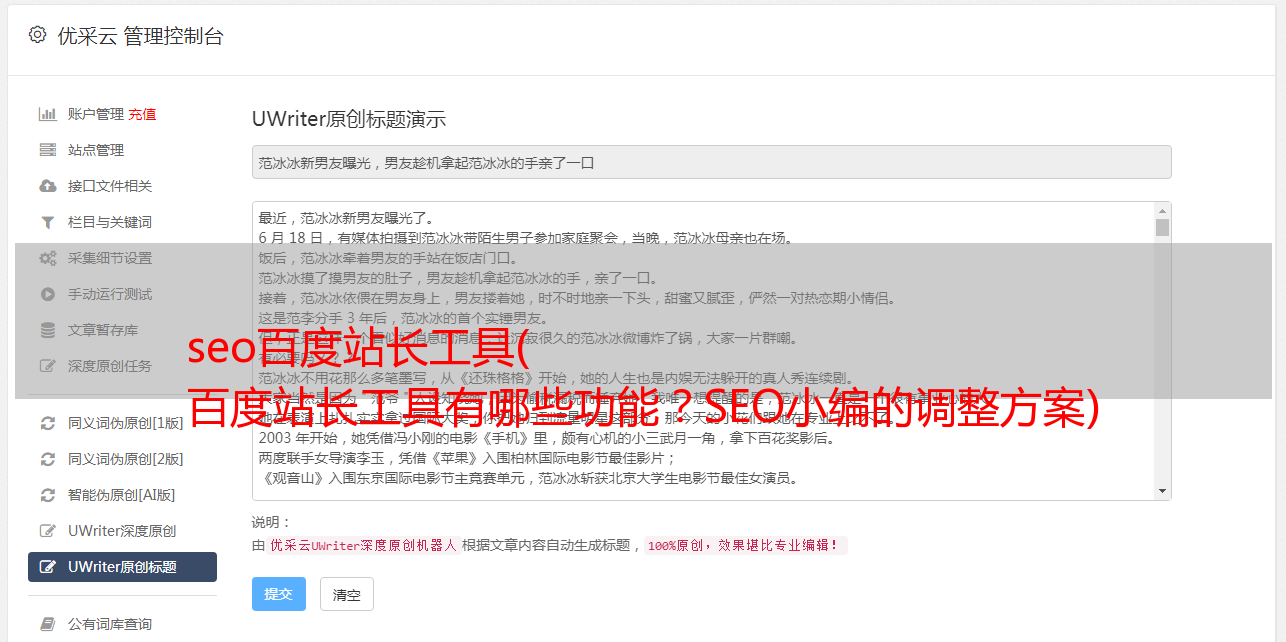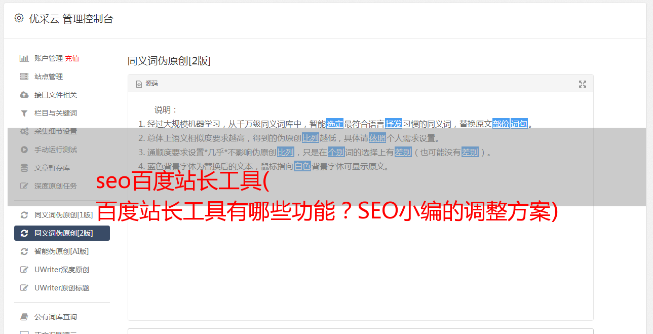 优采云 发布时间: 2022-04-19 08:01seo百度站长工具(