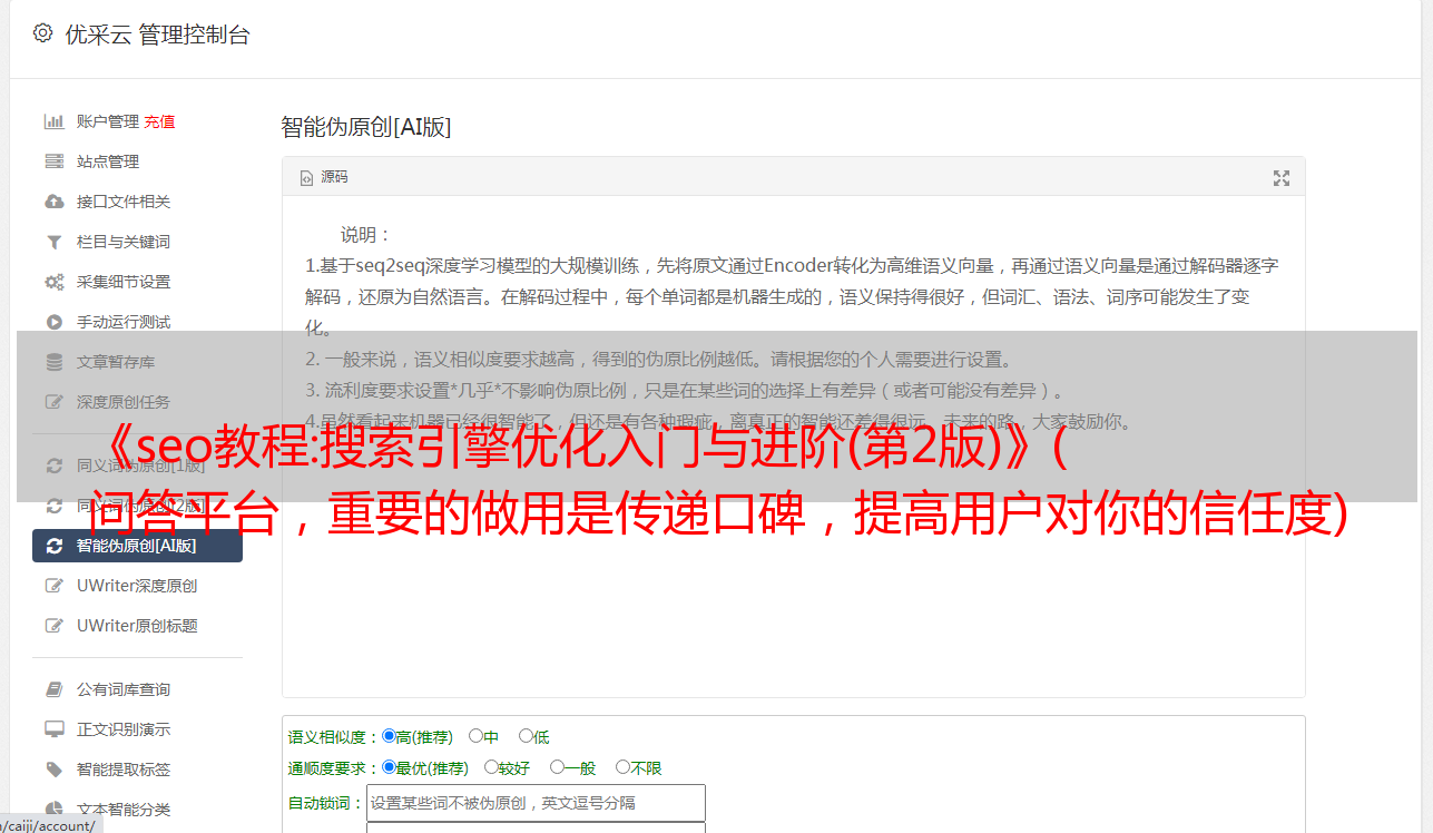优采云 发布时间: 2022-04-19 16:00《seo教程:搜索引擎优化入门与进阶(第2版)》(