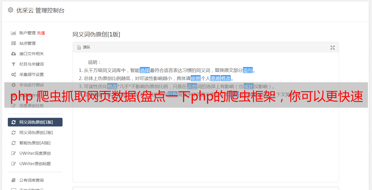 优采云 发布时间: 2022-04-19 16:46php 爬虫抓取网页数据(盘点一下php的爬虫框架,你可以更快速的接收内容)