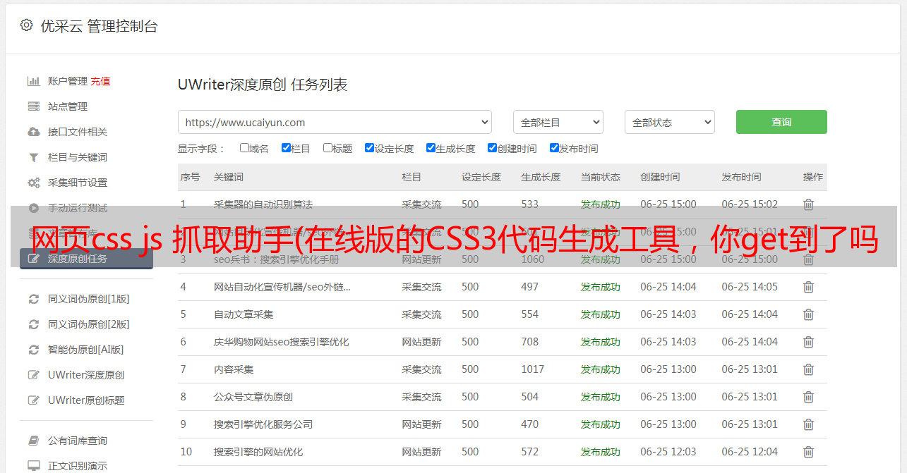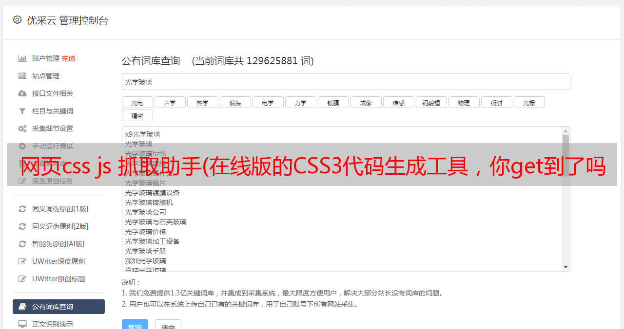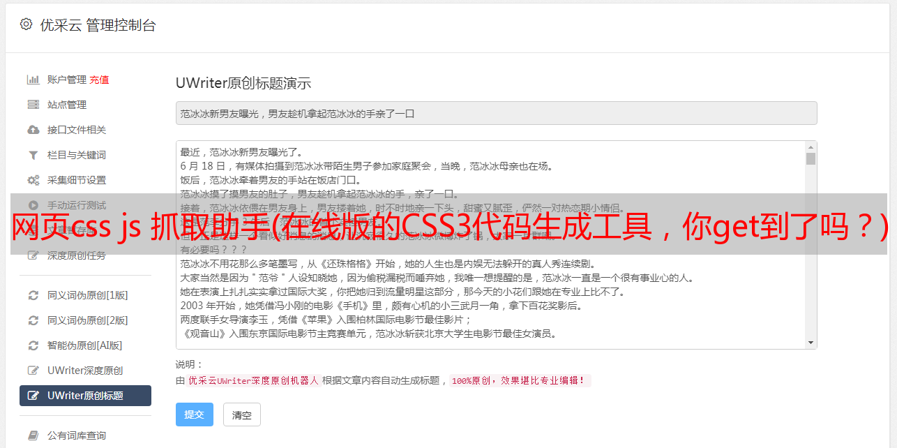 优采云 发布时间: 2022-04-20 04:01网页css js 抓取助手(在线版的CSS3代码生成工具,你get到了吗?)