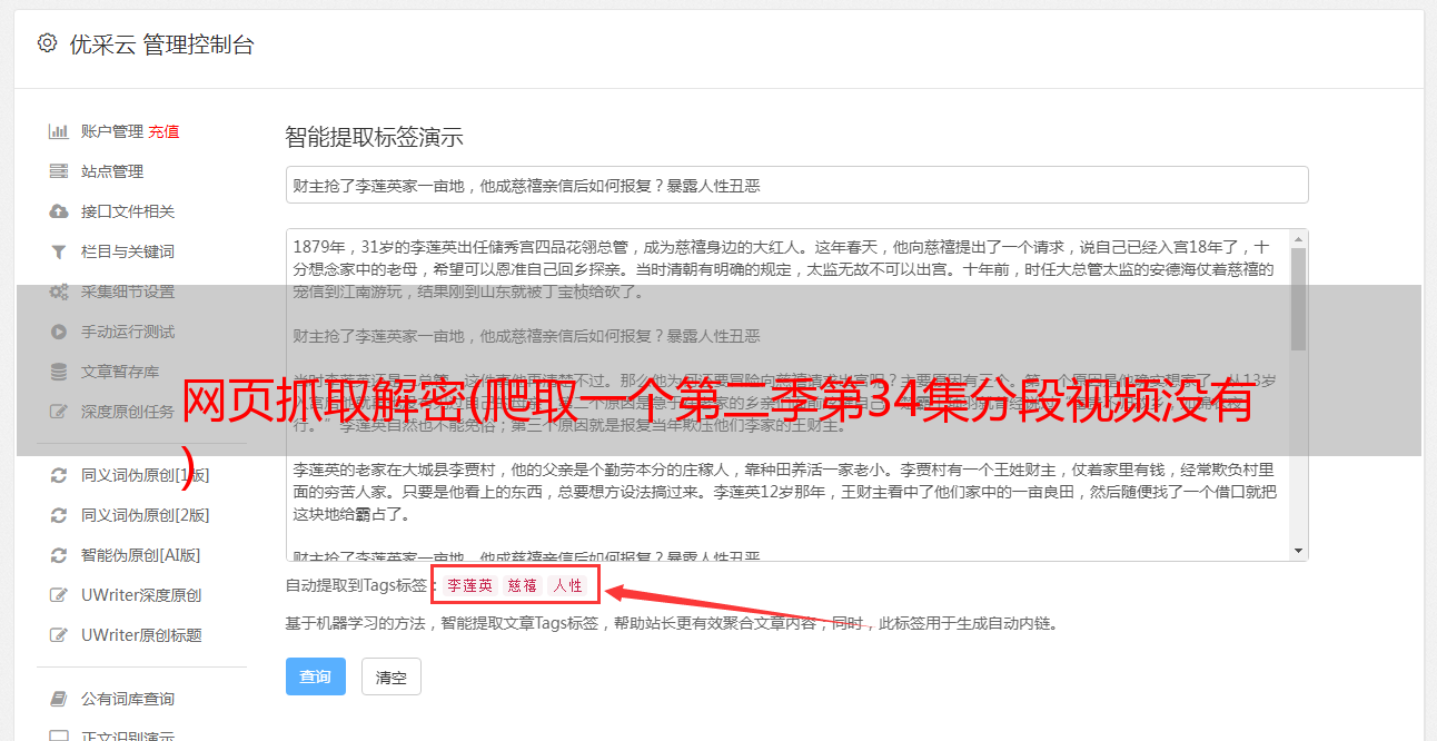 优采云 发布时间: 2022-04-20 08:55网页抓取解密(爬取一个第二季第34集分段视频没有