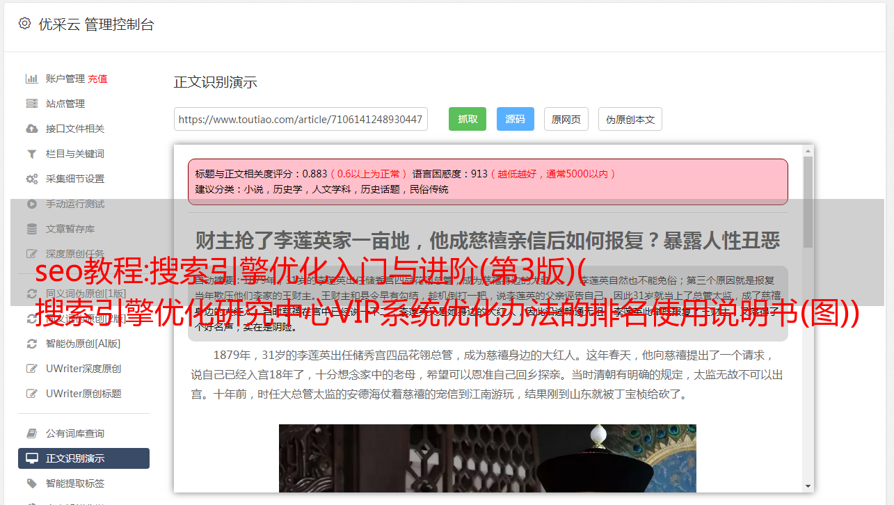 seo教程:搜索引擎优化入门与进阶(第3版)( 搜索引擎优化研究中心VIP系统优化办法的排名使用说明书(图))