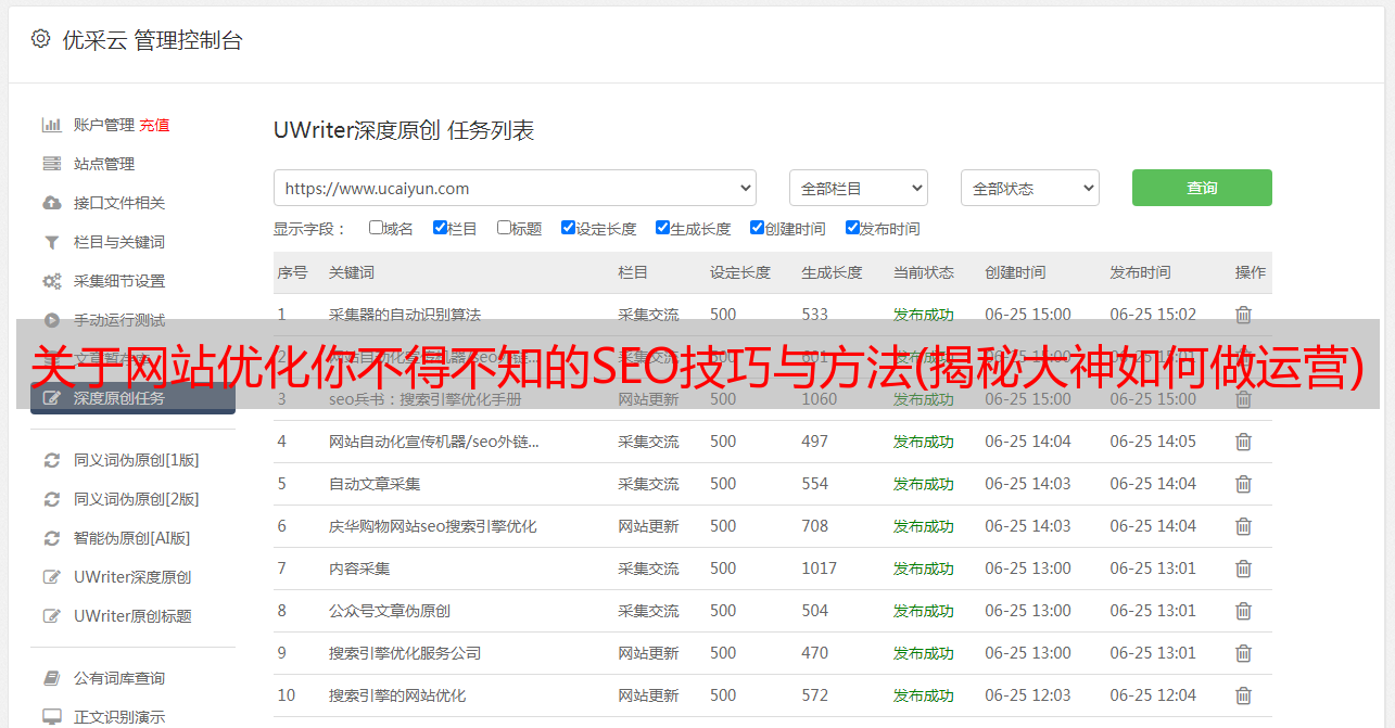 优采云 发布时间: 2022-04-29 03:09关于网站优化你不得不知的SEO技巧与方法(揭秘大神如何做运营)