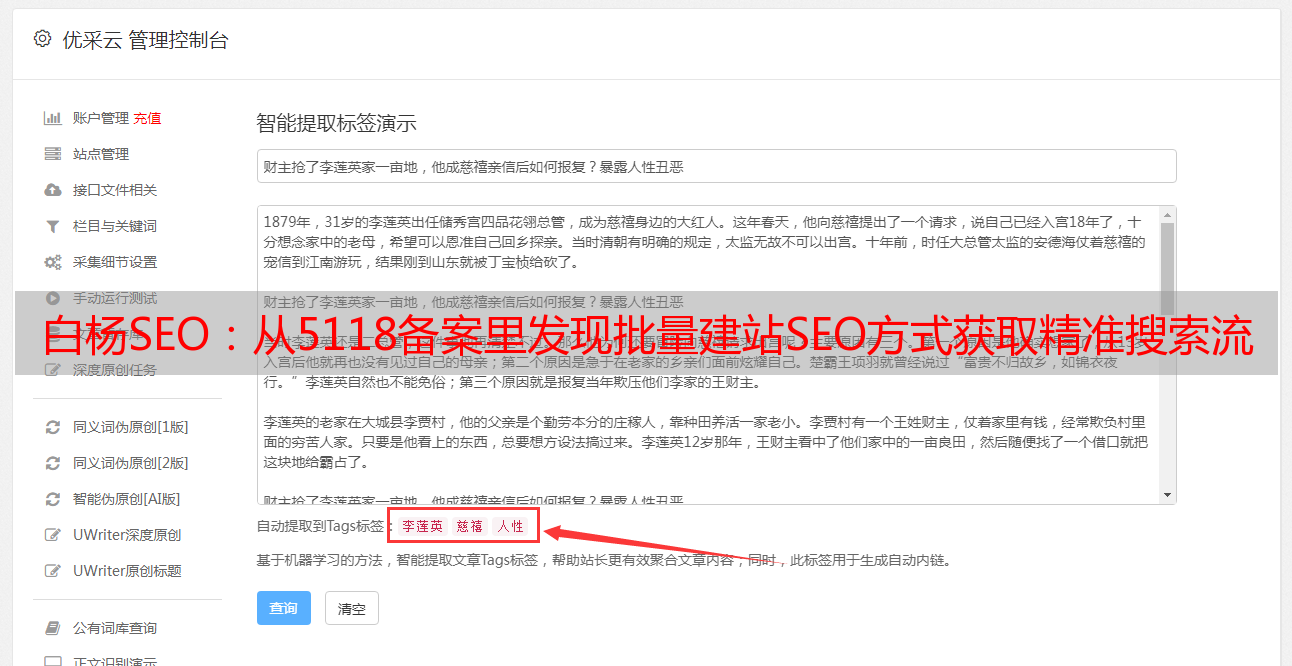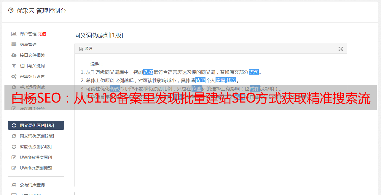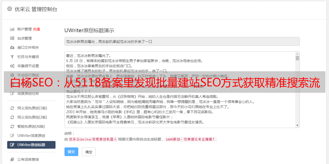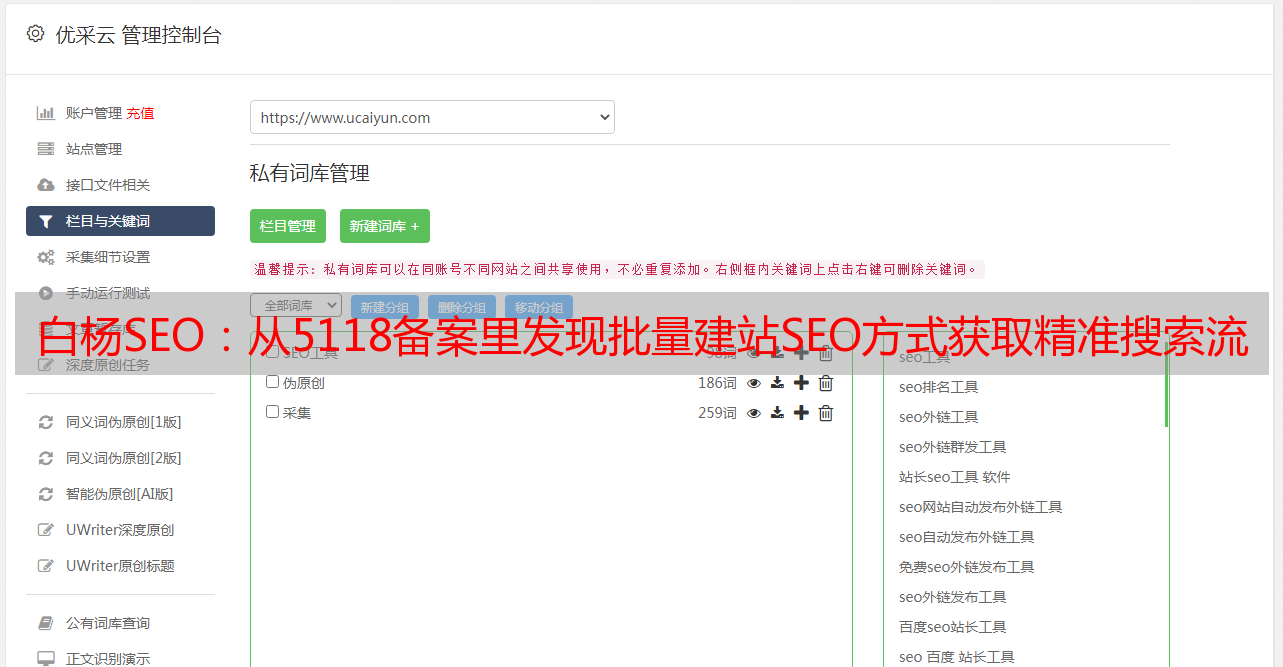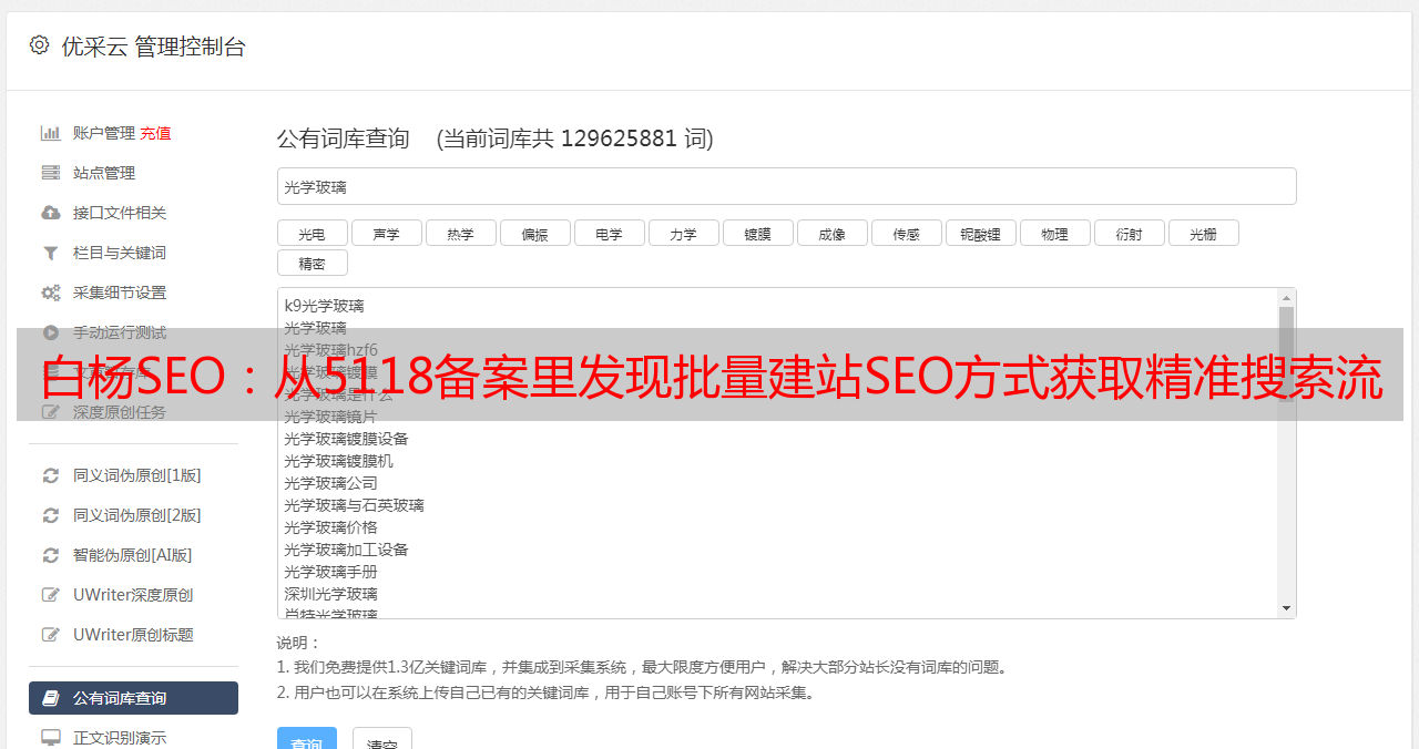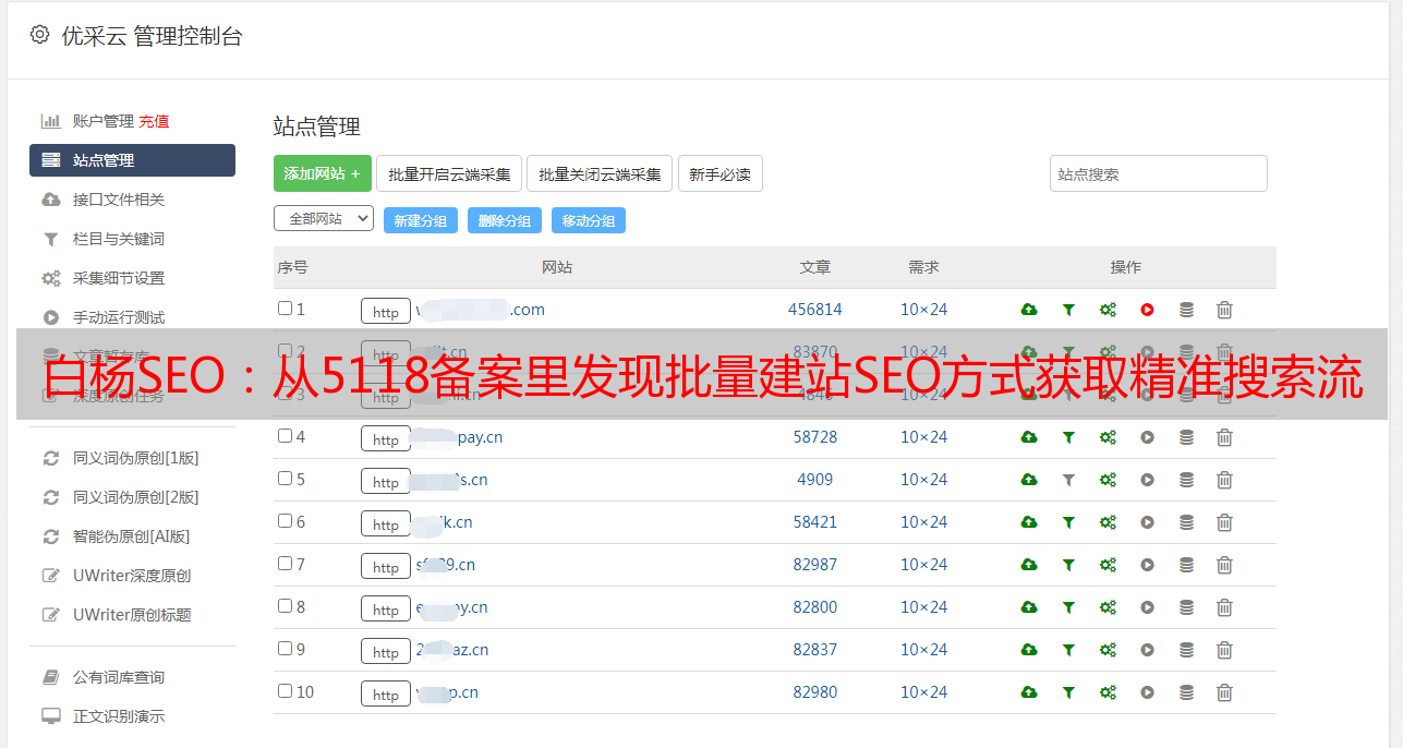 优采云 发布时间: 2022-04-29 06:08白杨SEO:从5118备案里发现批量建站SEO方式获取精准搜索流量!