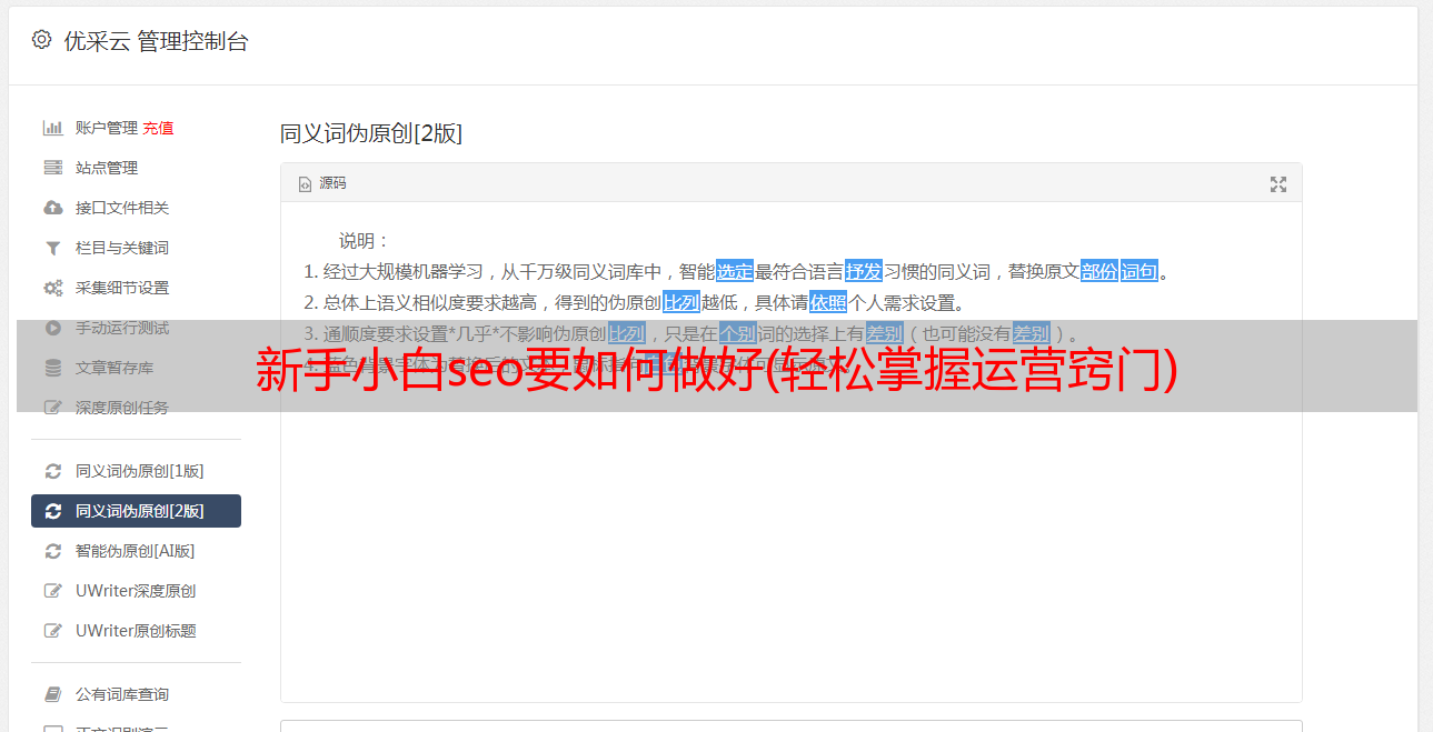 优采云 发布时间: 2022-04-29 10:00新手小白seo要如何做好(轻松掌握运营窍门)