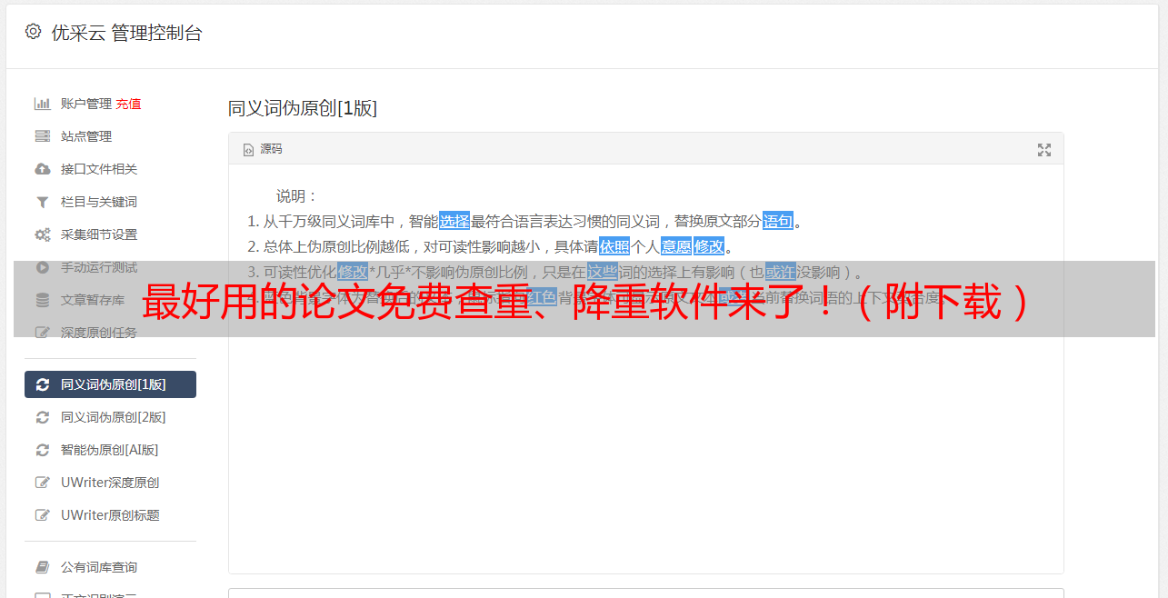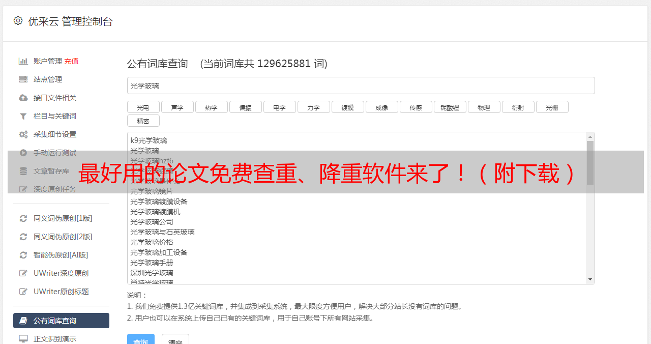 优采云 发布时间: 2022-04-29 16:03最好用的论文免费查重、降重软件来了!(附下载)