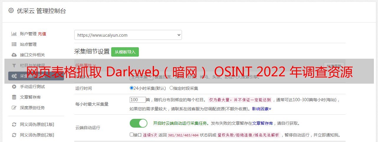 优采云 发布时间: 2022-04-29 23:23网页表格抓取 Darkweb(暗网) OSINT 2022 年调查资源