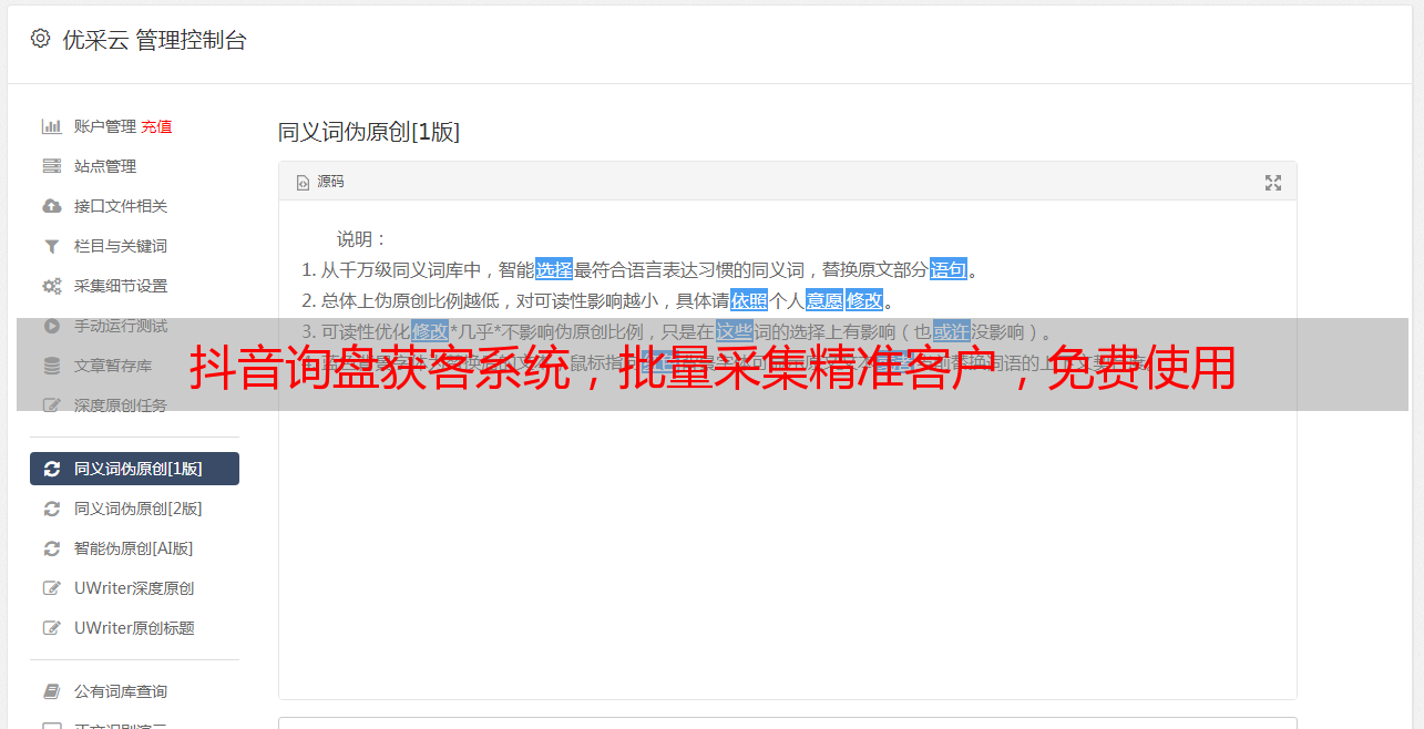 优采云 发布时间: 2022-04-30 02:15抖音询盘获客系统,批量采集精准客户,免费使用