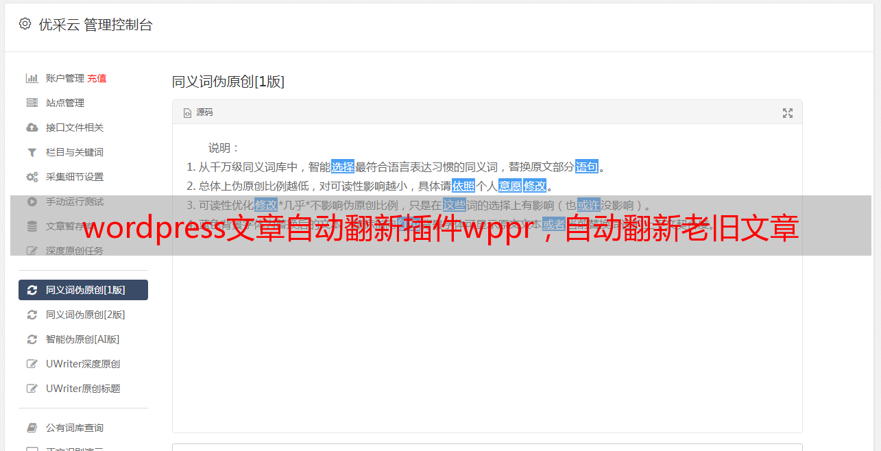 优采云 发布时间: 2022-04-30 04:10wordpress文章自动翻新插件wppr,自动翻新老旧文章