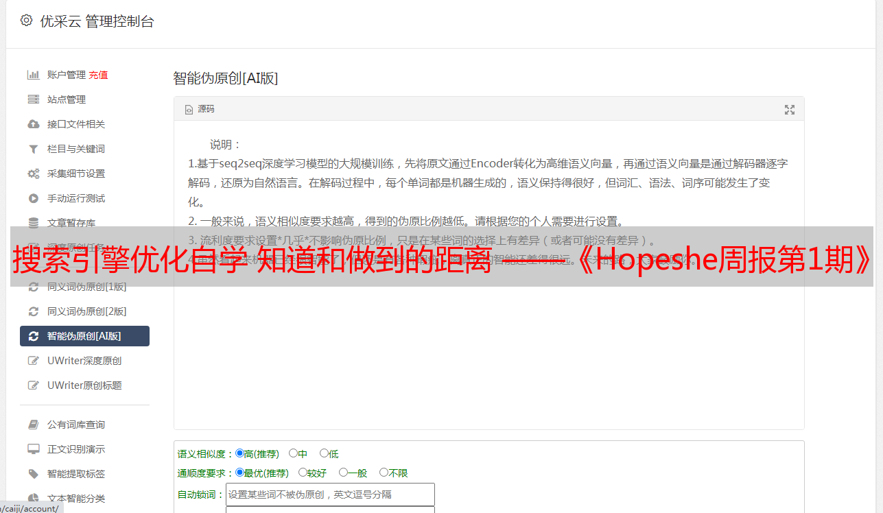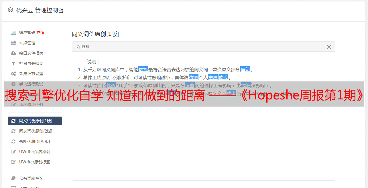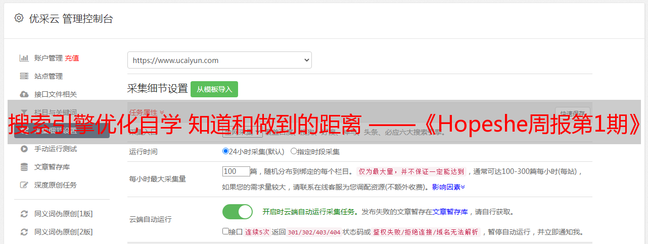 优采云 发布时间: 2022-04-30 18:18搜索引擎优化自学 知道和做到的距离 ——《Hopeshe周报第1期》