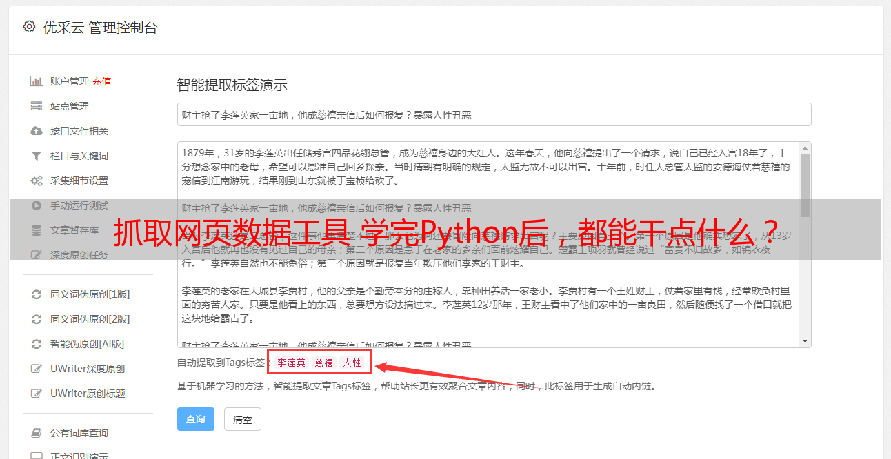 优采云 发布时间: 2022-05-01 06:07抓取网页数据工具 学完Python后,都能干点什么?