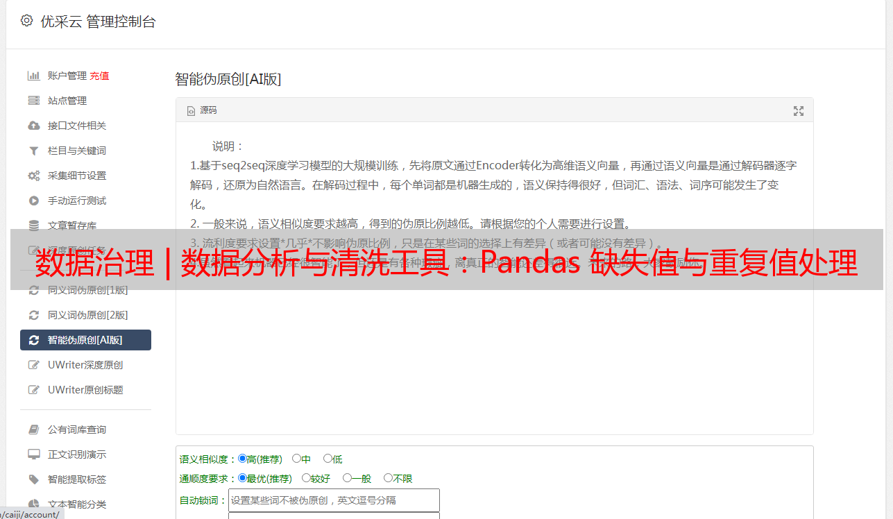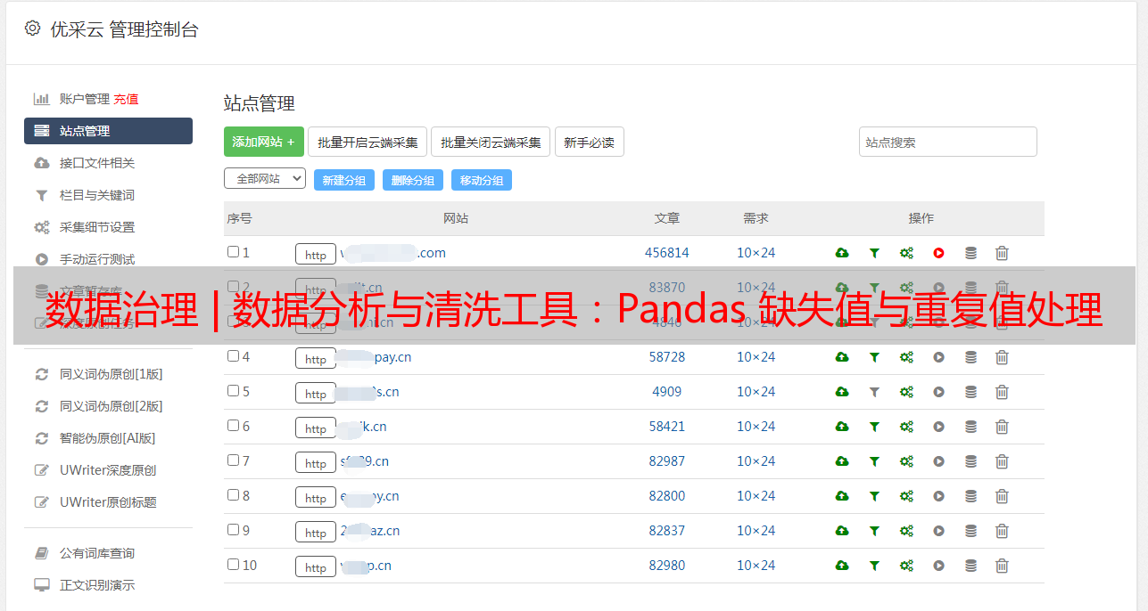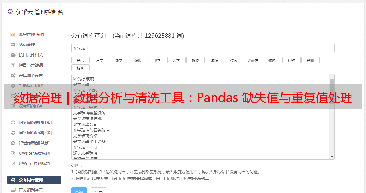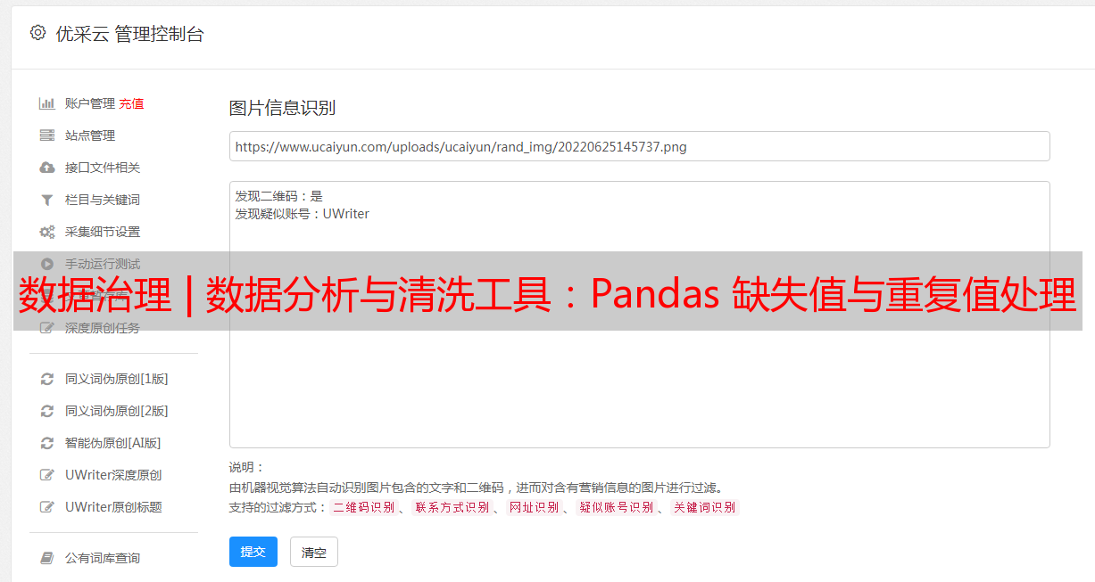 优采云 发布时间: 2022-05-02 02:51数据治理 | 数据分析与清洗工具:Pandas 缺失值与重复值处理