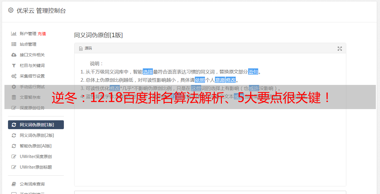 优采云 发布时间: 2022-05-04 07:36逆冬:12.18百度排名算法解析、5大要点很关键!