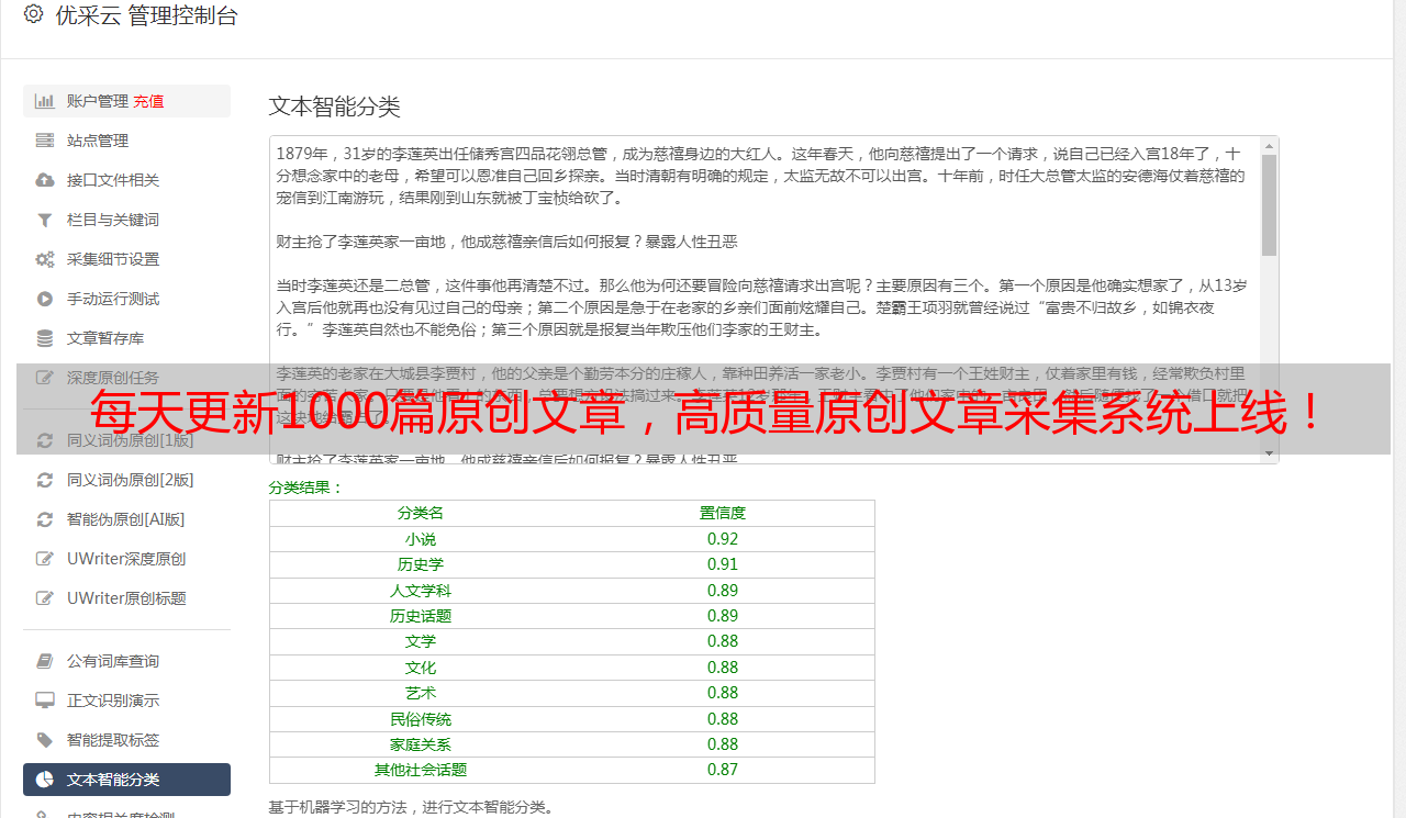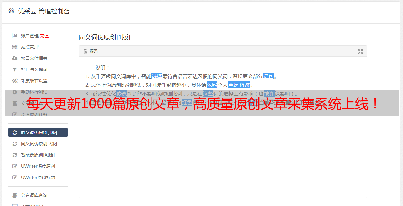 每天更新1000篇原创文章,高质量原创文章采集系统上线!