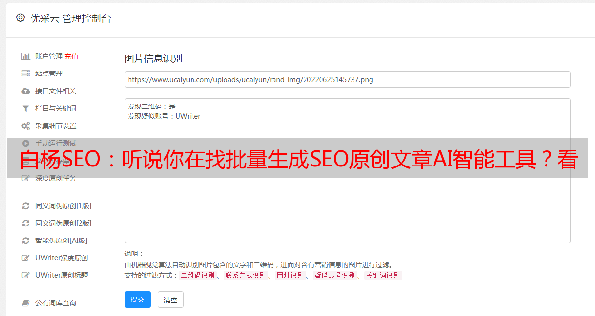 声明:本工具系白杨SEO技术好友开发,仅适合SEO使用:如有站群、网站等,需要大批量生产文章较合适,但单篇文章伪原创需求或自媒体文章,如公众号就不是很合适!
