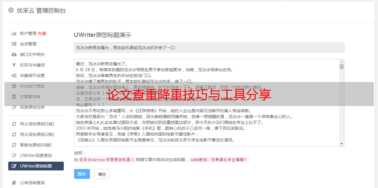 优采云 发布时间: 2022-05-05 10:25论文查重降重技巧与工具分享