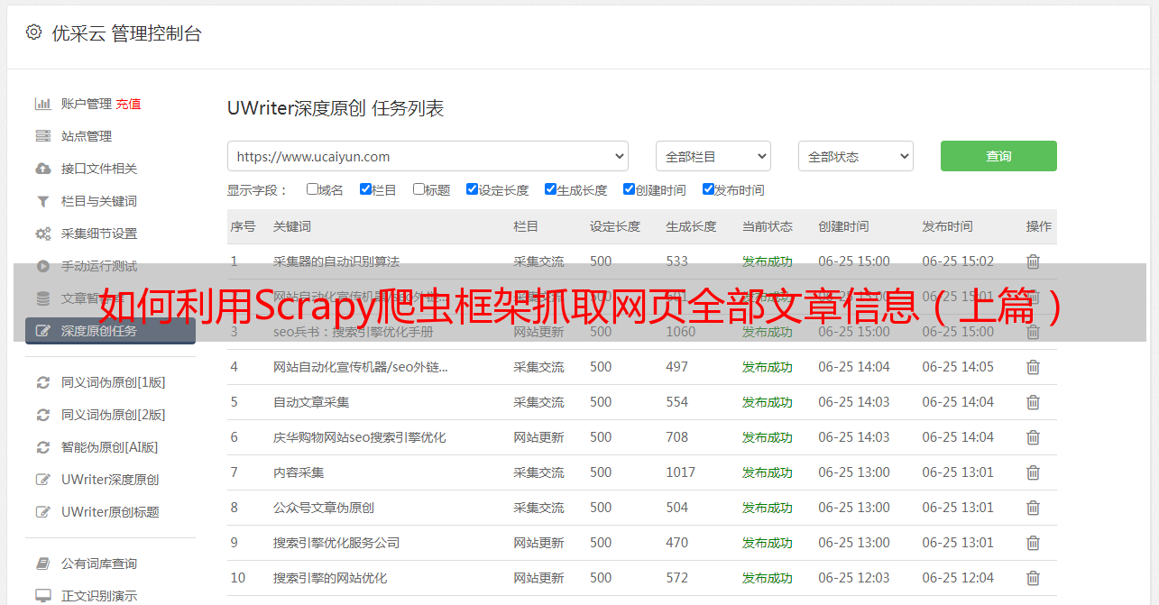 优采云 发布时间: 2022-05-05 17:11如何利用Scrapy爬虫框架抓取网页全部文章信息(上篇)
