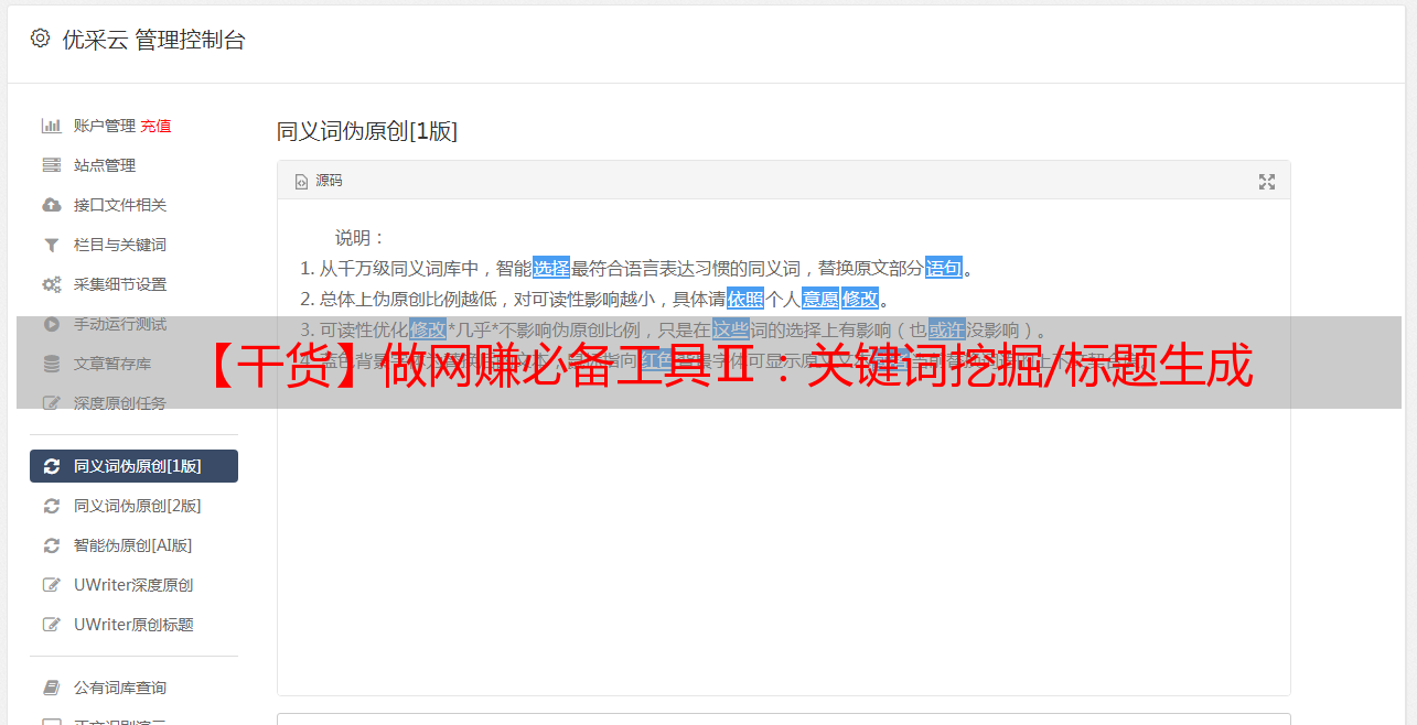 优采云 发布时间: 2022-05-05 22:04【干货】做网赚必备工具Ⅱ:关键词挖掘/标题生成