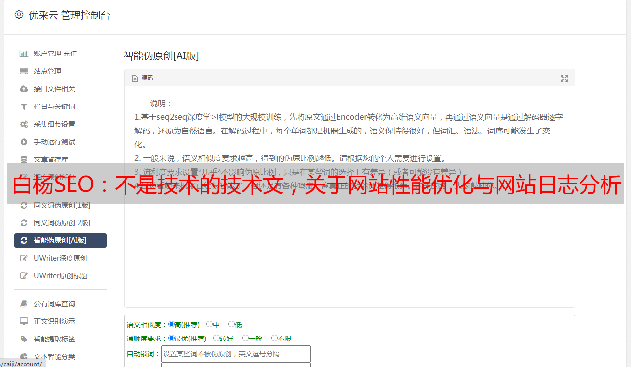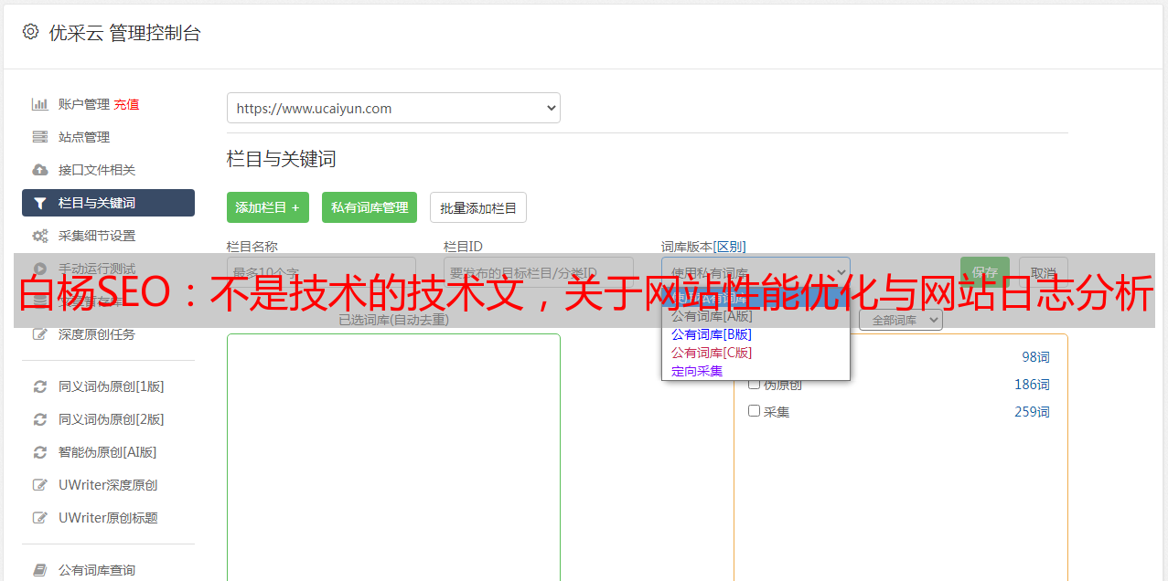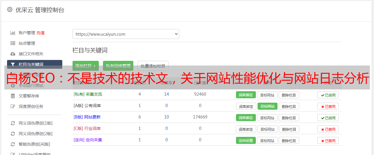 优采云 发布时间: 2022-05-06 10:12白杨SEO:不是技术的技术文,关于网站性能优化与网站日志分析