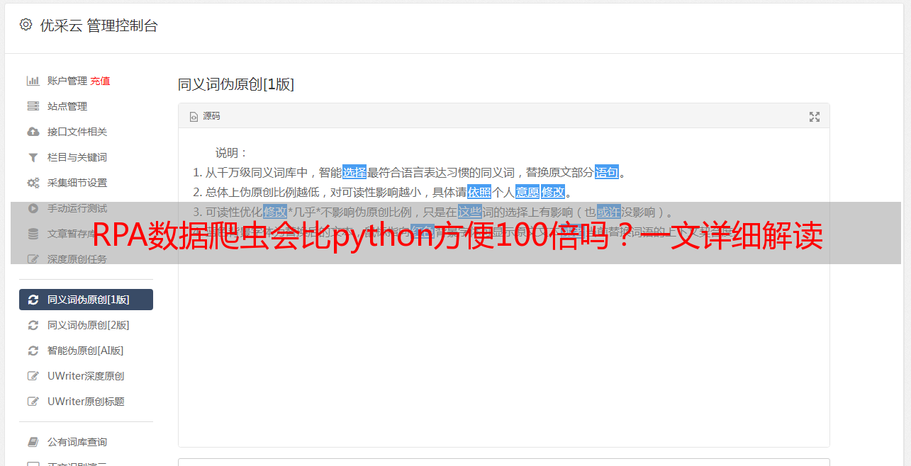 优采云 发布时间: 2022-05-08 04:22RPA数据爬虫会比python方便100倍吗?一文详细解读