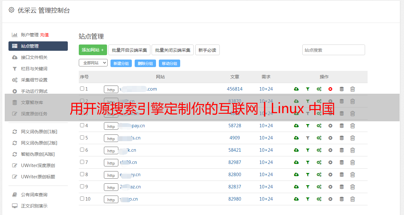 优采云 发布时间: 2022-05-08 13:49用开源搜索引擎定制你的互联网 | Linux 中国
