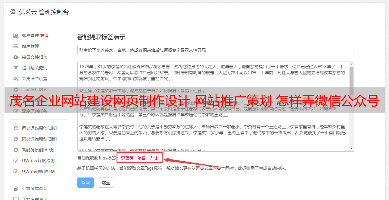 优采云 发布时间: 2022-05-08 20:45茂名企业网站建设网页制作设计 网站推广策划 怎样弄微信公众号 微信公众号制作 企