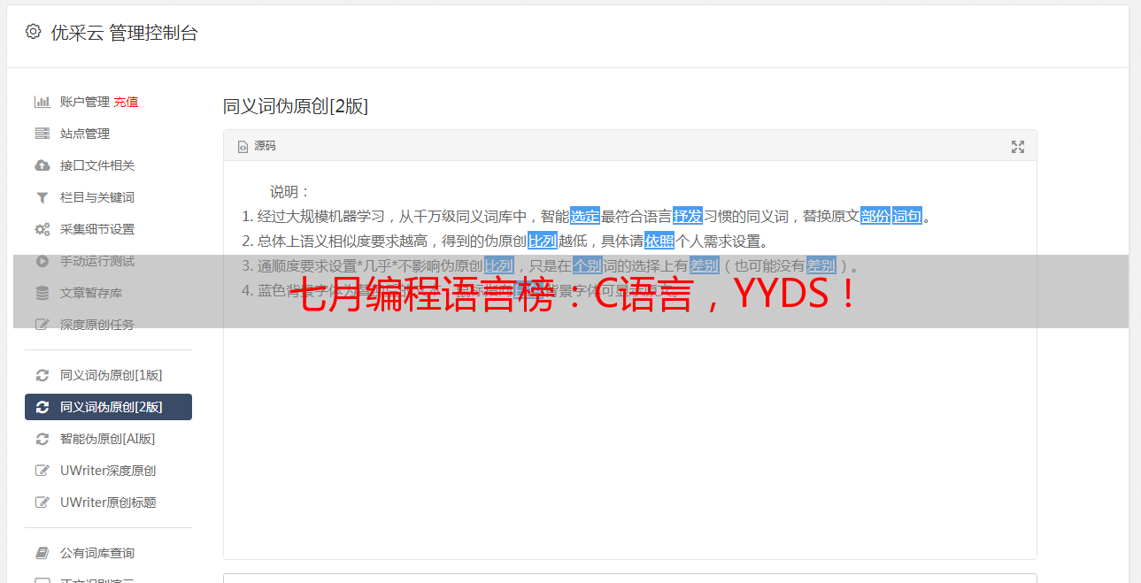 优采云 发布时间: 2022-05-09 03:11七月编程语言榜:C语言,YYDS!