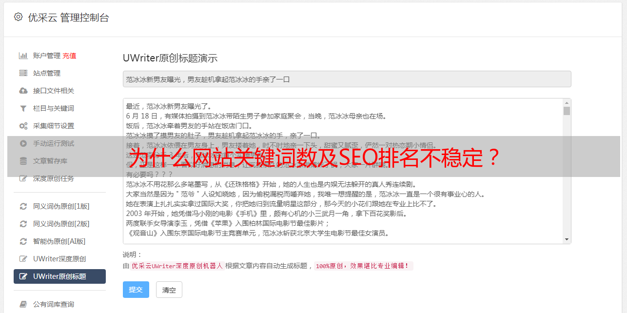 优采云 发布时间: 2022-05-09 10:42为什么网站关键词数及SEO排名不稳定?