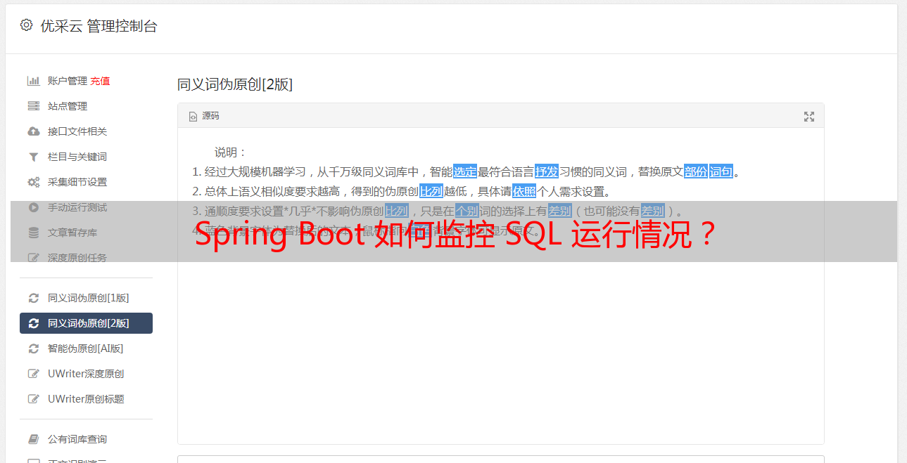 优采云 发布时间: 2022-05-09 12:17Spring Boot 如何监控 SQL 运行情况?