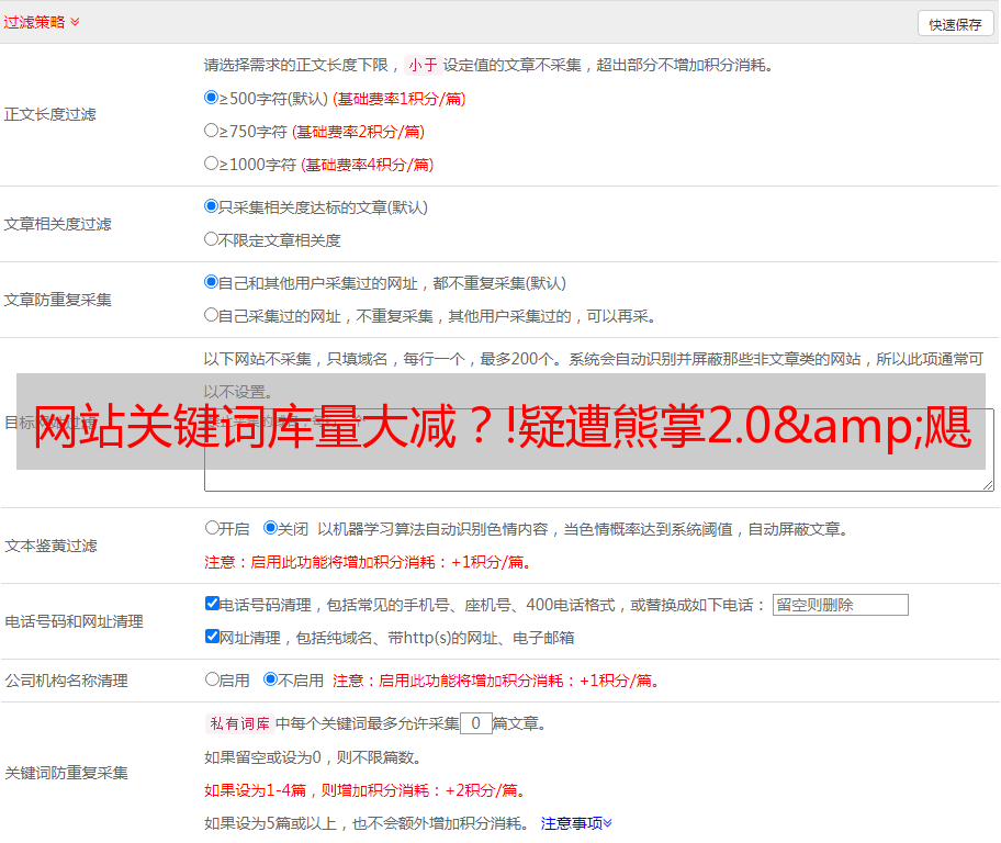网站关键词库量大减?!疑遭熊掌2.0&飓风2.0联合狙击?