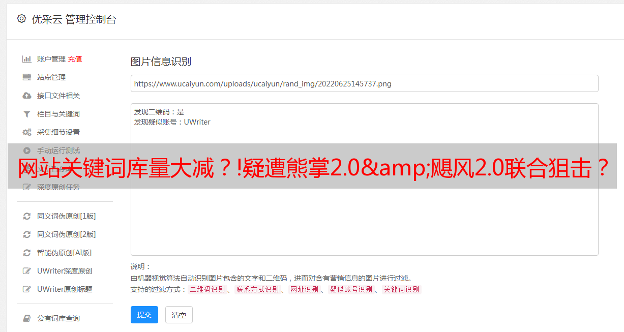 优采云 发布时间: 2022-05-09 16:50网站关键词库量大减?!疑遭熊掌2.0&飓风2.0联合狙击?