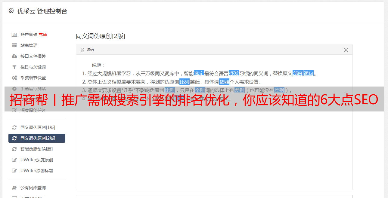 伪原创内容优点:撰写简单,只要有点语文基础的人便可操作,降低企业运营以及时间成本!