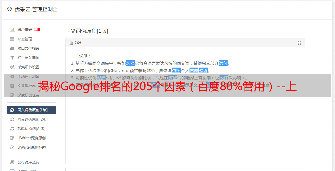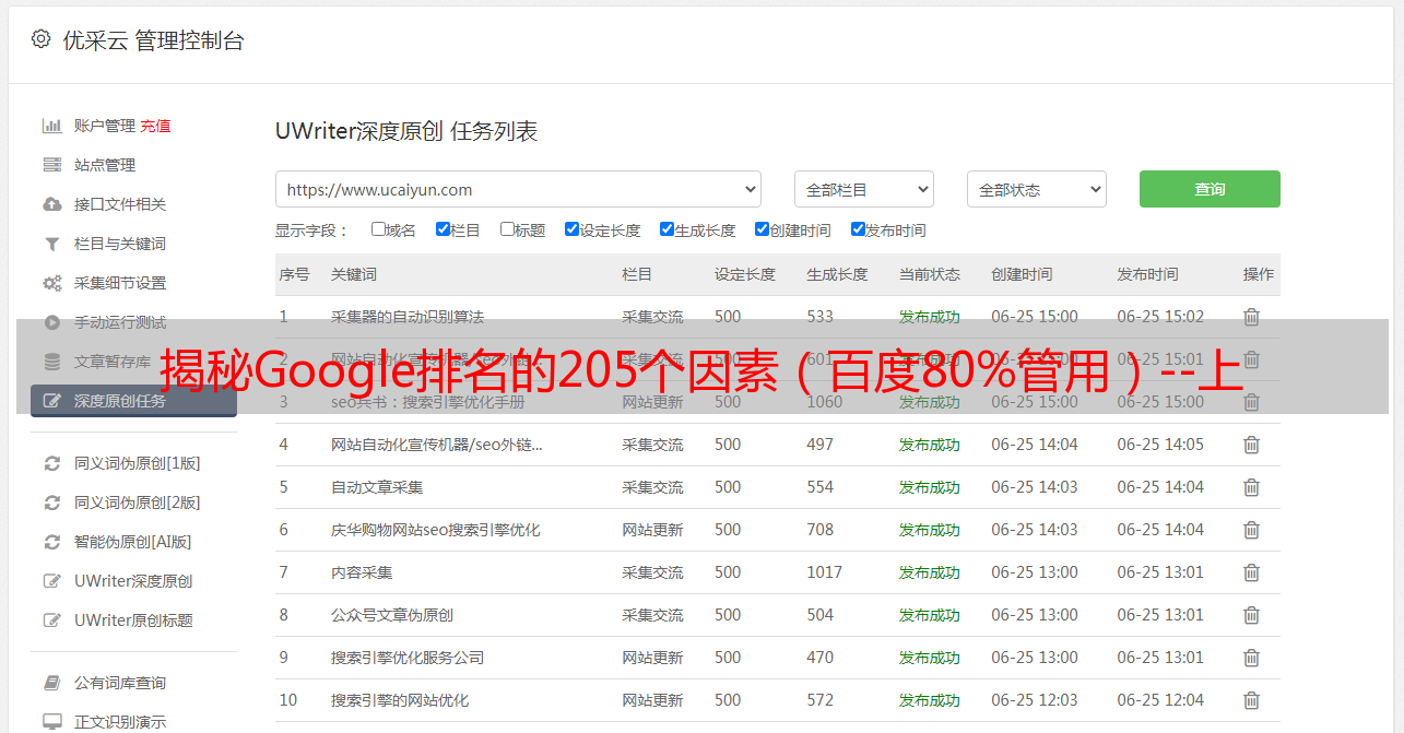 优采云 发布时间: 2022-05-09 19:38揭秘Google排名的205个因素(百度80%管用)--上
