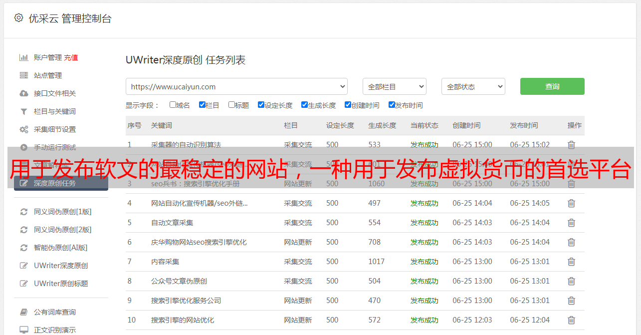 优采云 发布时间: 2020-08-06 22:22用于发布软件文章和采集虚拟货币的最稳定的网站是首选的发布平台之一. 百度通常会在1到7天内提供正常的网站. 但是,随着百度算法的不断升级,对Inclusion的要求越来越高,这就要求用户不断提高自己的软文内容的质量!因此,对我们来说,广告的推广尤为重要!