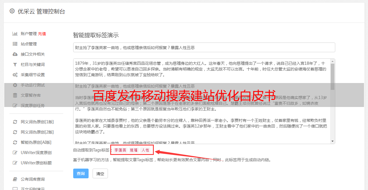 优采云 发布时间: 2022-05-09 21:52百度发布移动搜索建站优化白皮书
