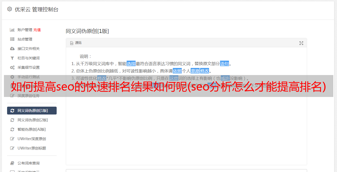 优采云 发布时间: 2022-05-10 13:37如何提高seo的快速排名结果如何呢(seo分析怎么才能提高排名)