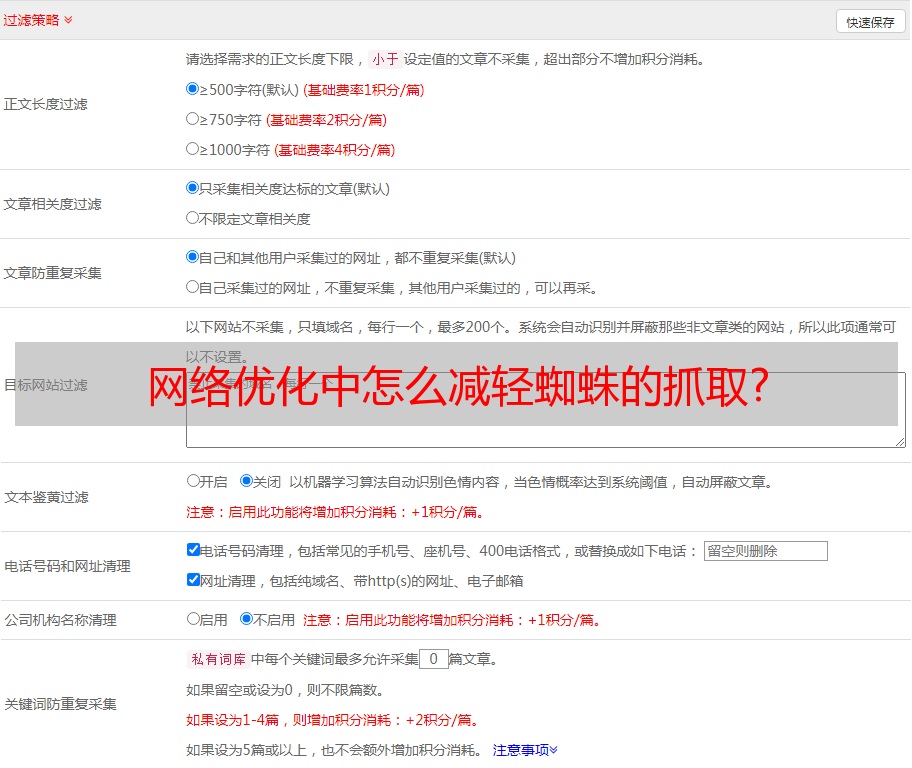 优采云 发布时间: 2022-05-10 17:37网络优化中怎么减轻蜘蛛的抓取?