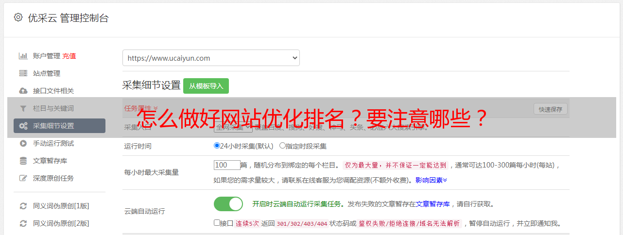 优采云 发布时间: 2022-05-10 18:59怎么做好网站优化排名?要注意哪些?